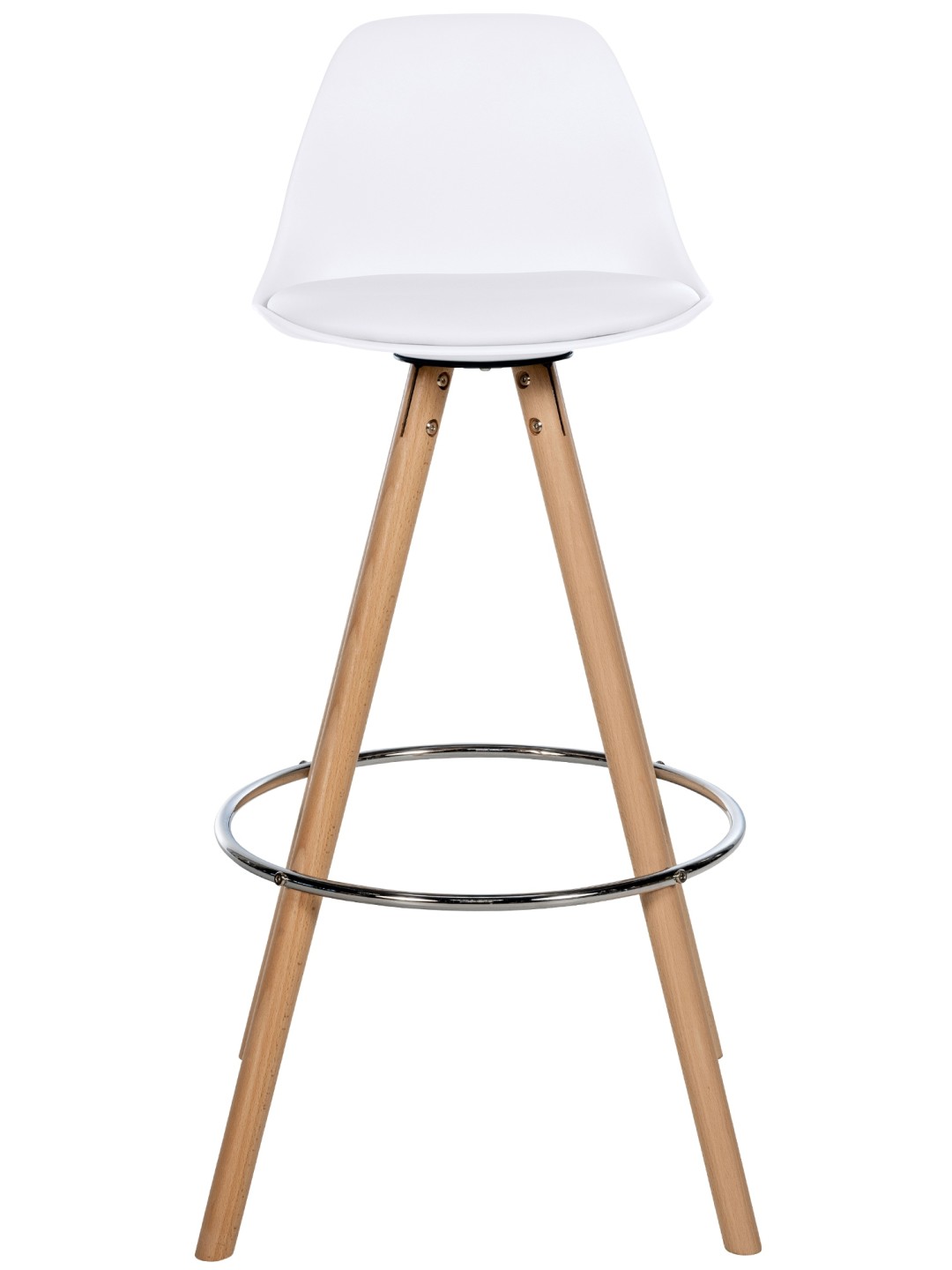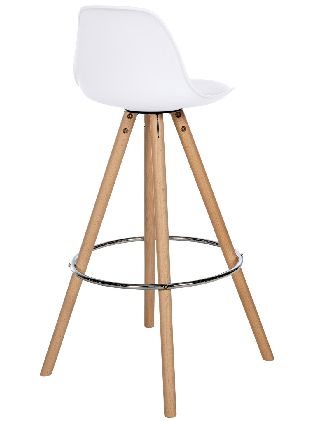 La estructura está hecha de madera de haya, que es ideal para la construcción de muebles debido a su estabilidad. Las patas del taburete se estabilizan mediante los travesaños metálicos redondos del mismo nombre, sobre los que se pueden descansar los pies. Para que los suelos delicados no se rayen, las cuatro patas de la silla tienen protectores de suelo de plástico.