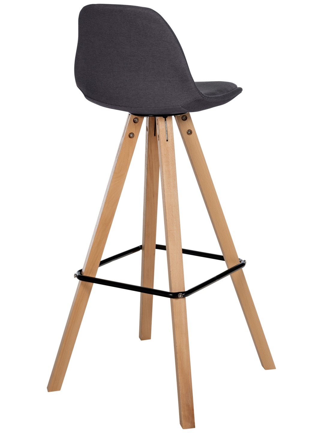 El taburete de bar convence por su diseño moderno y su sólida estructura de madera, que garantiza una capacidad de carga de hasta 120 kg. El asiento acolchado fabricado con tela de alta calidad garantiza una comodidad duradera, mientras que el respaldo y el reposapiés integrado brindan apoyo y comodidad adicionales.