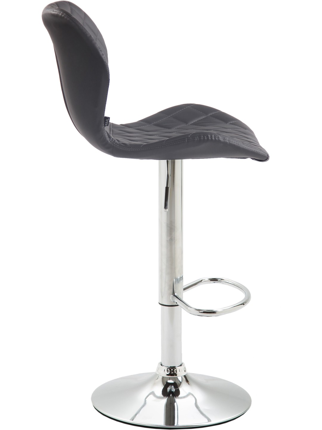 Este taburete de bar aporta a cualquier habitación un aspecto exclusivo y convence no sólo por sus excelentes propiedades de asiento, sino también por su moderno diseño. El elegante asiento acolchado con funda de piel sintética y el reposapiés le permitirán sentarse cómodamente durante más tiempo. El taburete del mostrador se puede ajustar en altura mediante un elevador de gas y se puede girar 360°. La base de trompeta de metal está equipada con un protector de piso que evita rayones y daños al piso.