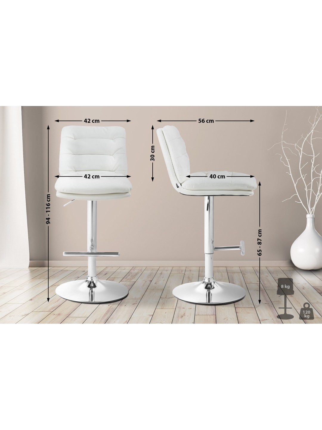 Taburete de bar Damar piel sintética cromado, blanco