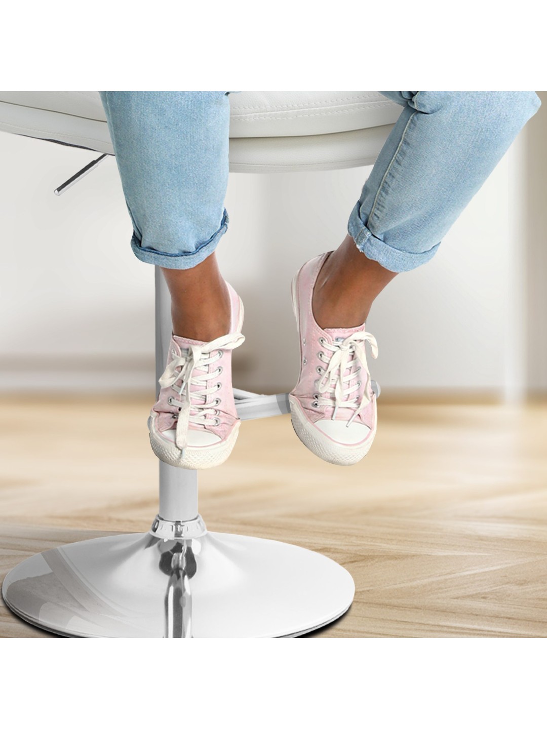 La estructura del taburete y la moderna funda le dan al taburete una apariencia elegante. El asiento está tapizado con cuero artificial de fácil cuidado. La estructura de metal es ajustable en altura y la función de rotación de 360 grados garantiza una gran libertad de movimiento.