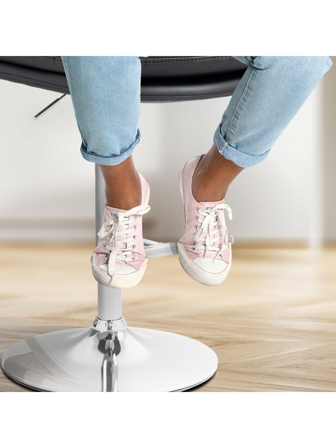 La estructura del taburete y la moderna funda le dan al taburete una apariencia elegante. El asiento está tapizado con cuero artificial de fácil cuidado. La estructura de metal es ajustable en altura y la función de rotación de 360 ​​grados garantiza una gran libertad de movimiento.