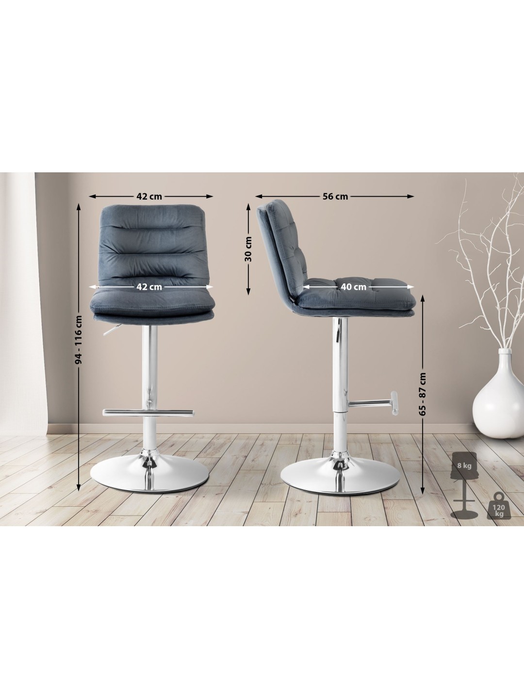 Taburete de bar Damar terciopelo cromado, gris oscuro