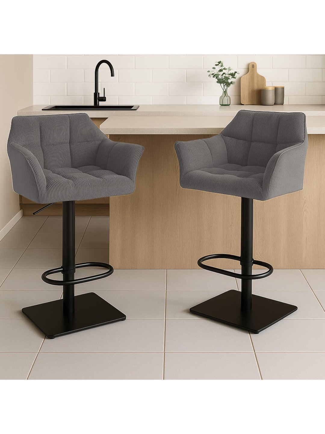 Con una impresionante capacidad de carga de 240 kg, el taburete no sólo ofrece estabilidad, sino también un excelente confort. El ajuste de altura integrado permite una adaptación flexible a diferentes alturas de mesa, lo que la hace especialmente versátil.