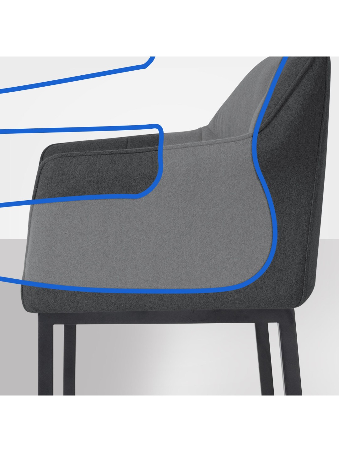 Taburete de bar Damaso B de fieltro con estructura de 4 pies, antracita