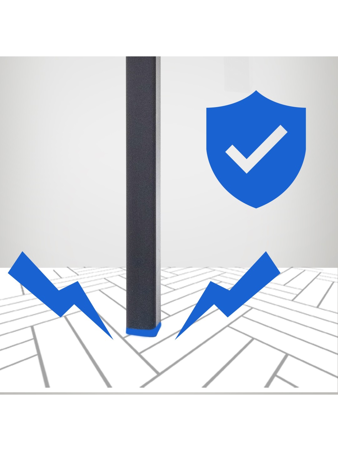 La estructura de cuatro patas de metal resistente garantiza estabilidad y puede soportar un máximo de 240 kilogramos. Los protectores de suelo en las patas de las sillas protegen de forma fiable los suelos sensibles contra arañazos.