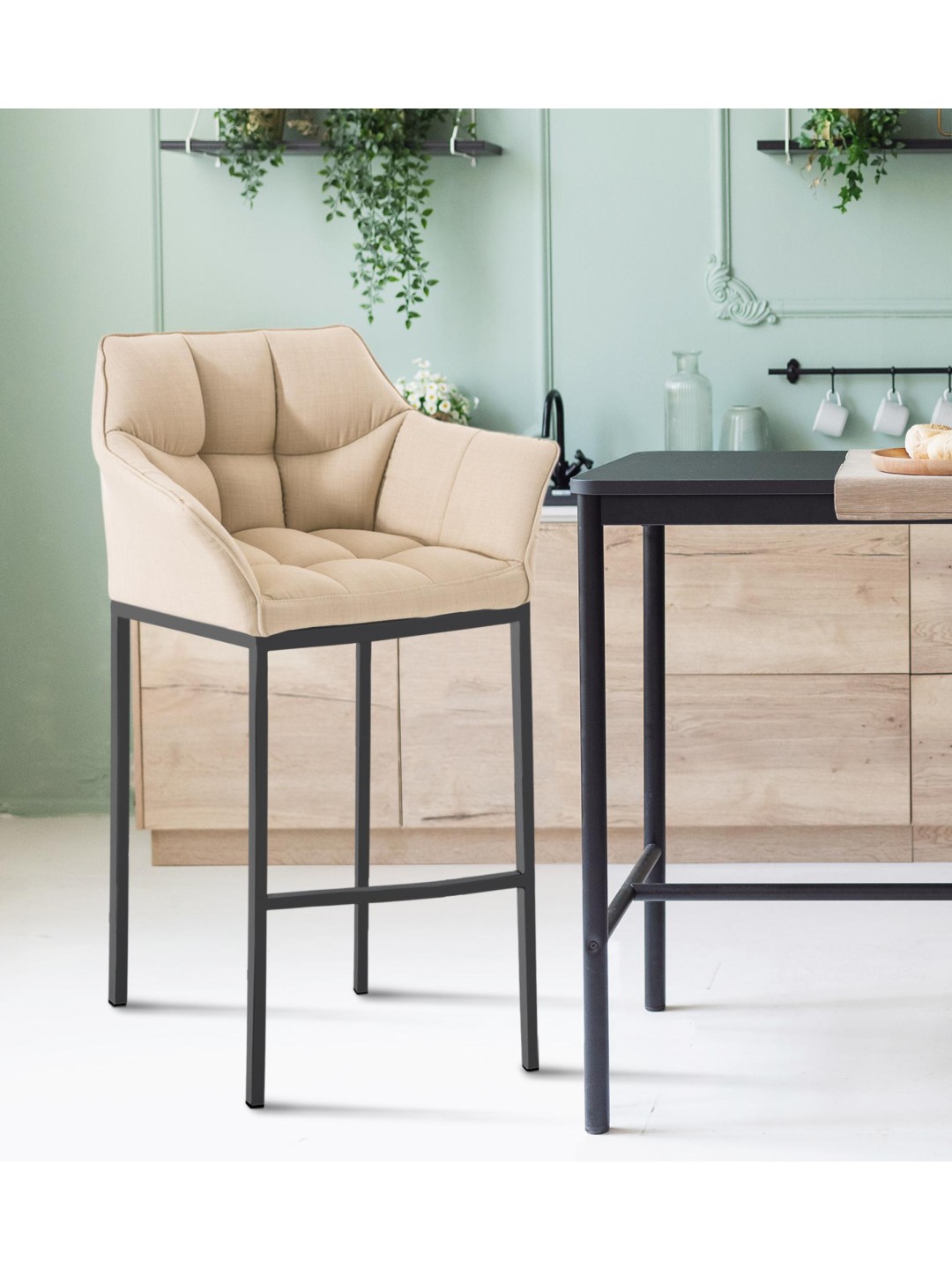 Taburete de bar Damaso B tela con estructura de 4 pies, crema