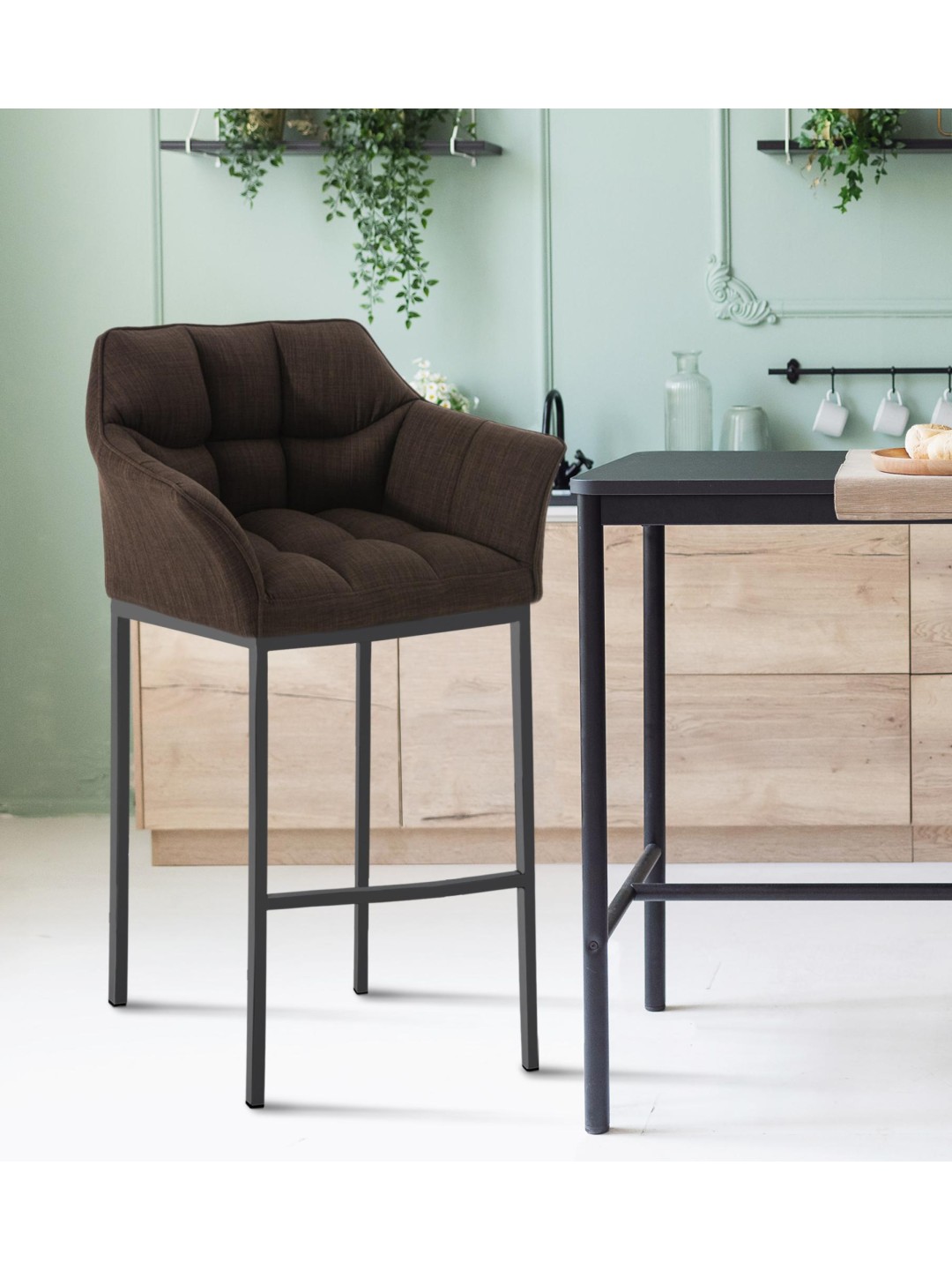 Taburete de bar Damaso B tela con estructura de 4 pies, marrón