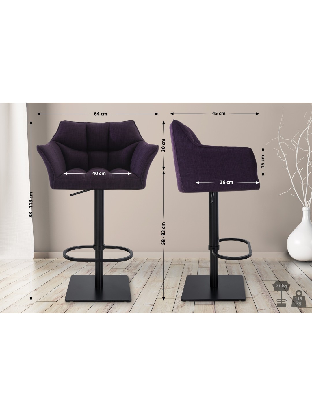 El respaldo y los reposabrazos proporcionan comodidad adicional al sentarse y una postura relajada. El taburete de bar es regulable en altura, de modo que la altura del asiento se puede ajustar entre 58 y 83 cm. La función de rotación de 360 ​​grados permite un movimiento sin esfuerzo. Gracias al reposapiés integrado, las patas se pueden aliviar.