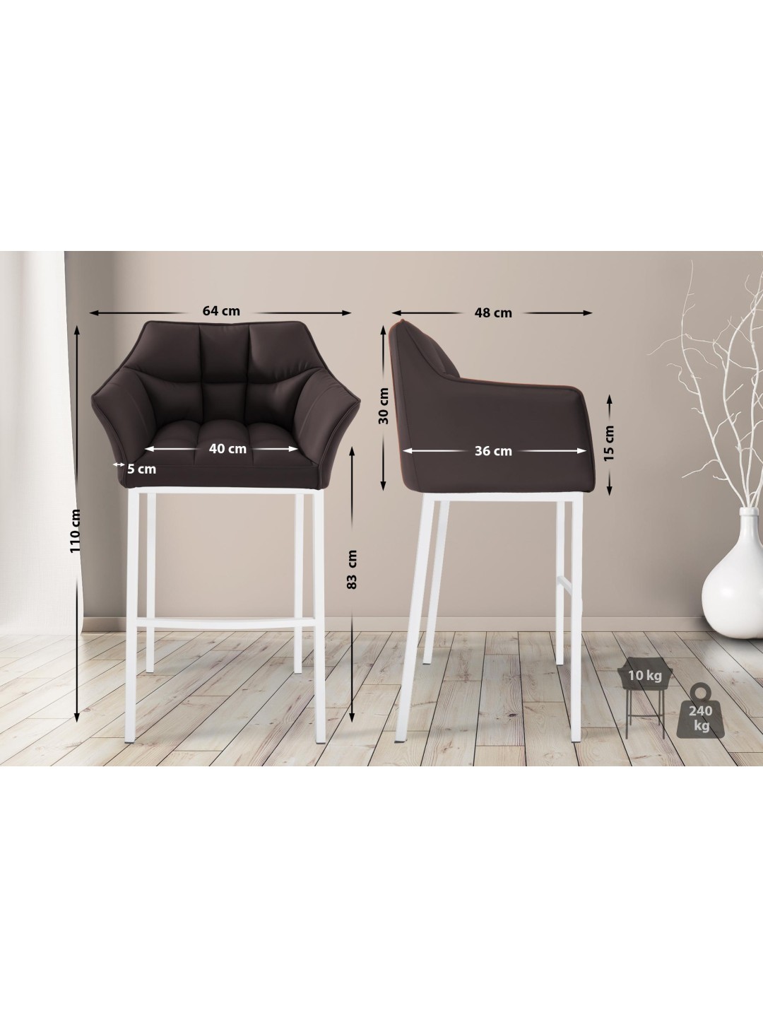 Taburete de bar Damaso con estructura de 4 pies, marrón