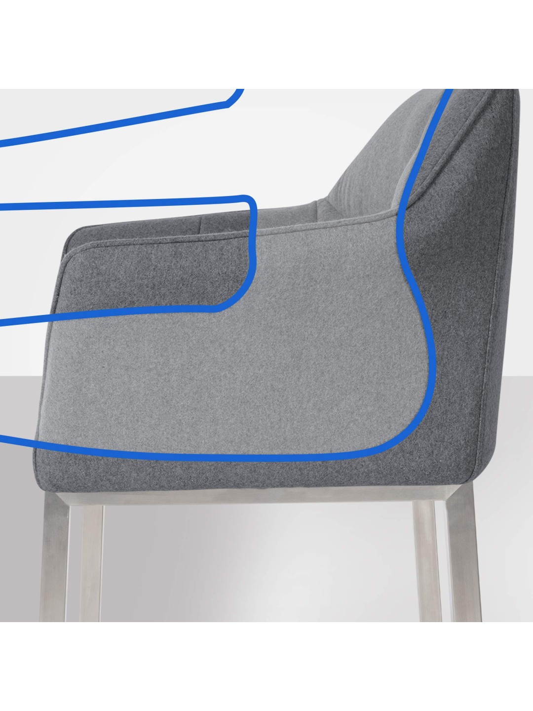 Taburete de bar Damaso E de fieltro con estructura de 4 pies, gris