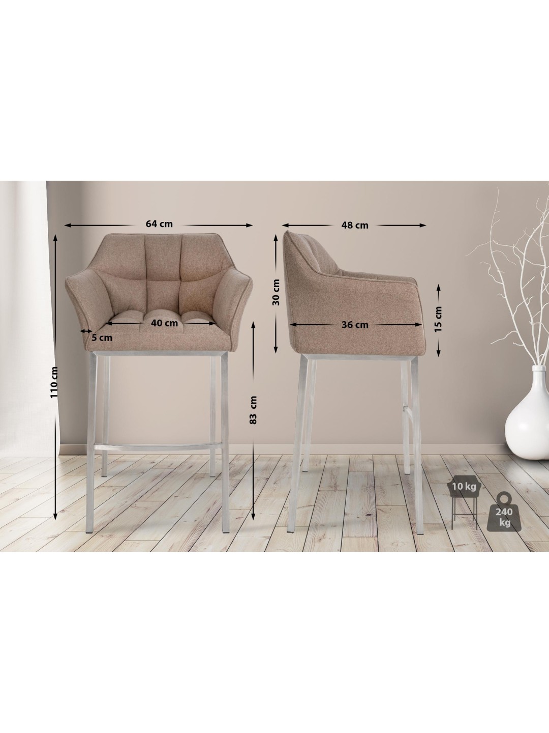 El taburete de bar Damaso convence por su diseño moderno y su gran resistencia. Con una altura de asiento de 83 centímetros, el taburete de bar es ideal para la mayoría de mostradores.