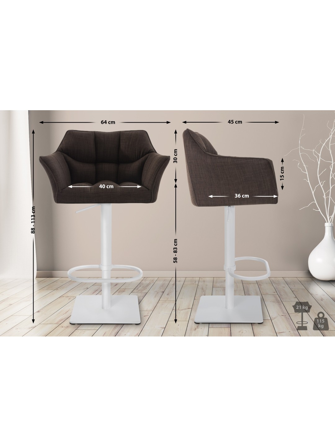 Taburete de bar Damaso W tela, marrón