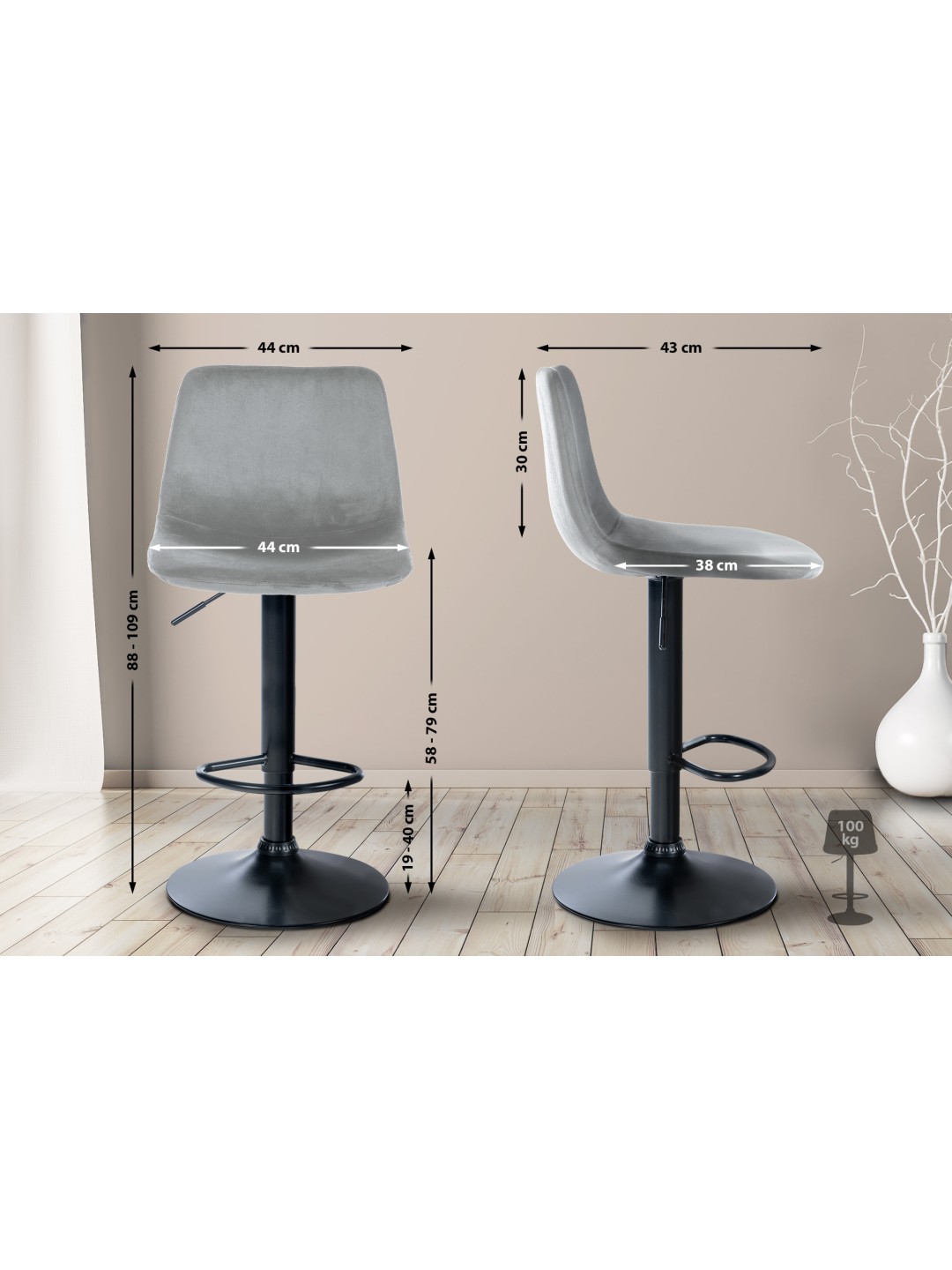 Taburete de bar Divo terciopelo, gris
