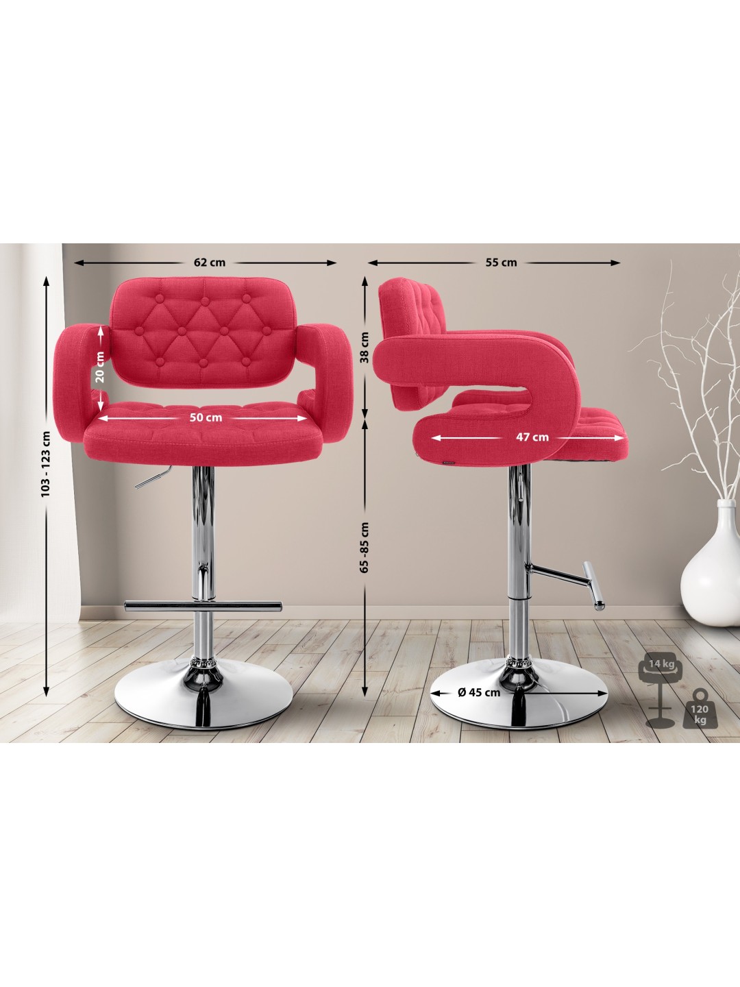 Taburete de bar Dublin FABRIC C, rojo