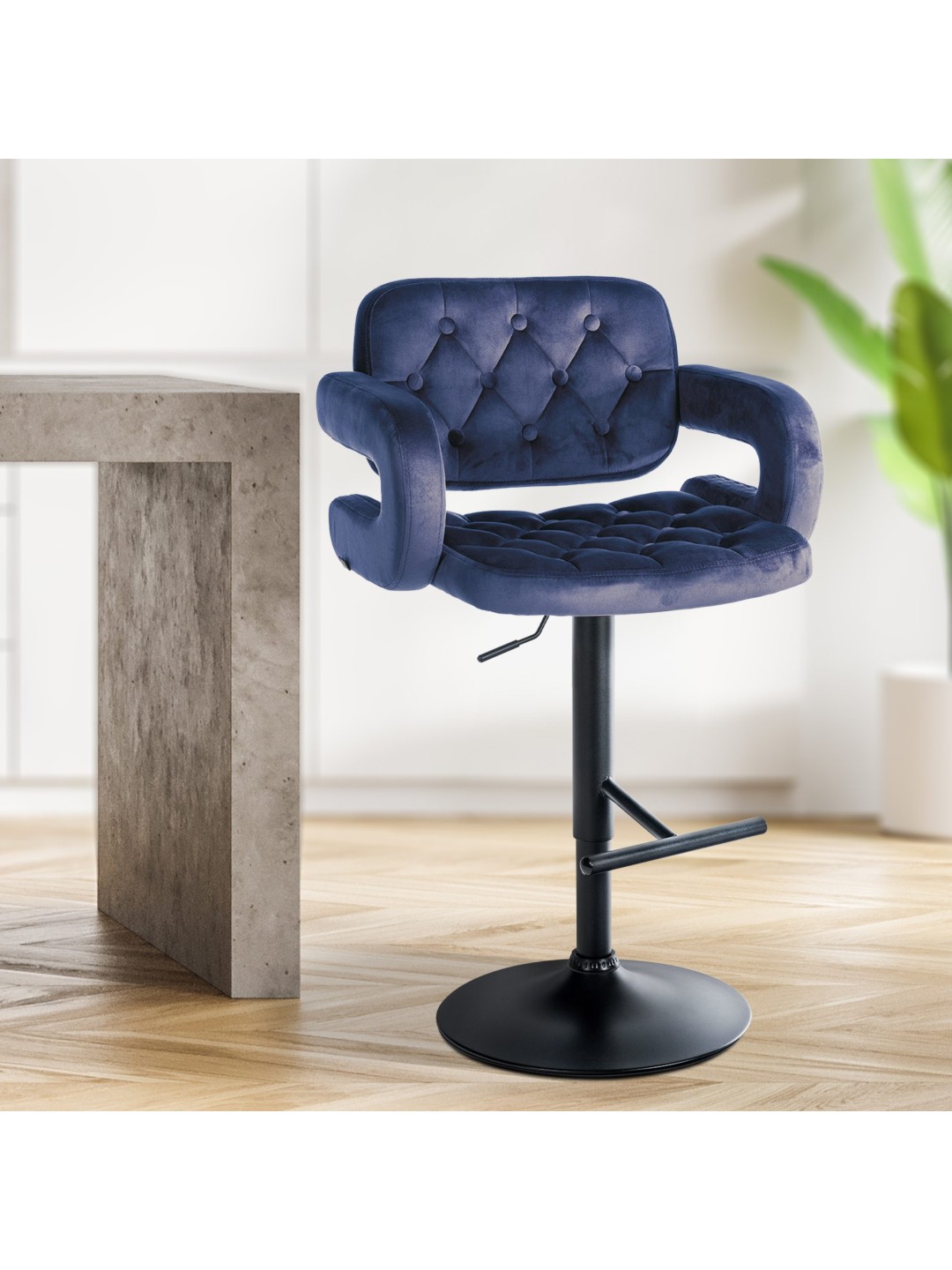 El taburete de bar Dublin encarna la elegancia atemporal y el confort moderno. Su funda de terciopelo acolchado no sólo le da un toque lujoso, sino que también ofrece una sensación cómoda al sentarse.