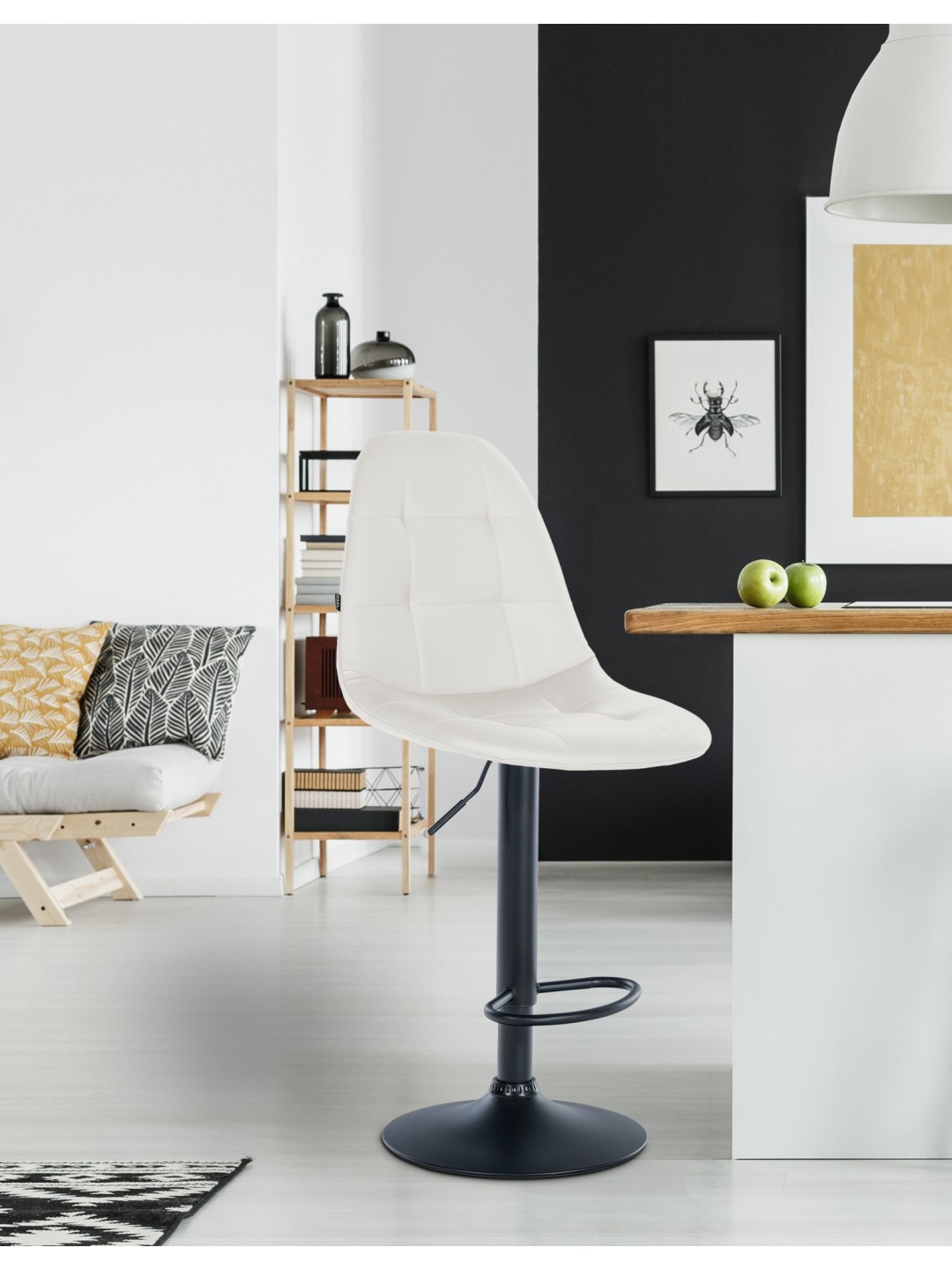 Taburete de bar Elmore piel sintética B, blanco