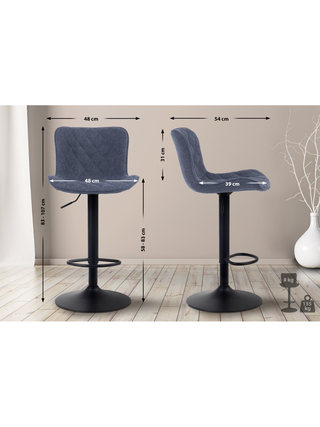 Altura total: 83 - 107 cm