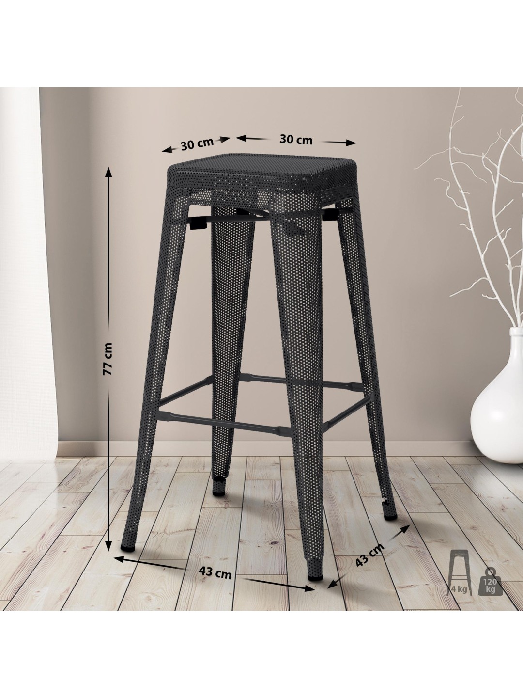 Equipado con una estructura de metal perforado, este taburete combina ligereza visual con estabilidad y soporta una capacidad de carga de hasta 120 kg. También ofrece un reposapiés para mejorar la comodidad del asiento. Es apilable y, por tanto, especialmente adecuado para lugares con espacio limitado. La altura del asiento es de 77 cm, por lo que cabe debajo de cualquier barra y mesa alta. Se incluyen protectores de piso para proteger los pisos de rayones y garantizar la estabilidad. El material del taburete es de fácil mantenimiento, lo que lo convierte en un complemento práctico para el uso diario, tanto en el hogar como en el sector de la restauración. Su diseño industrial encaja en estilos de decoración modernos.