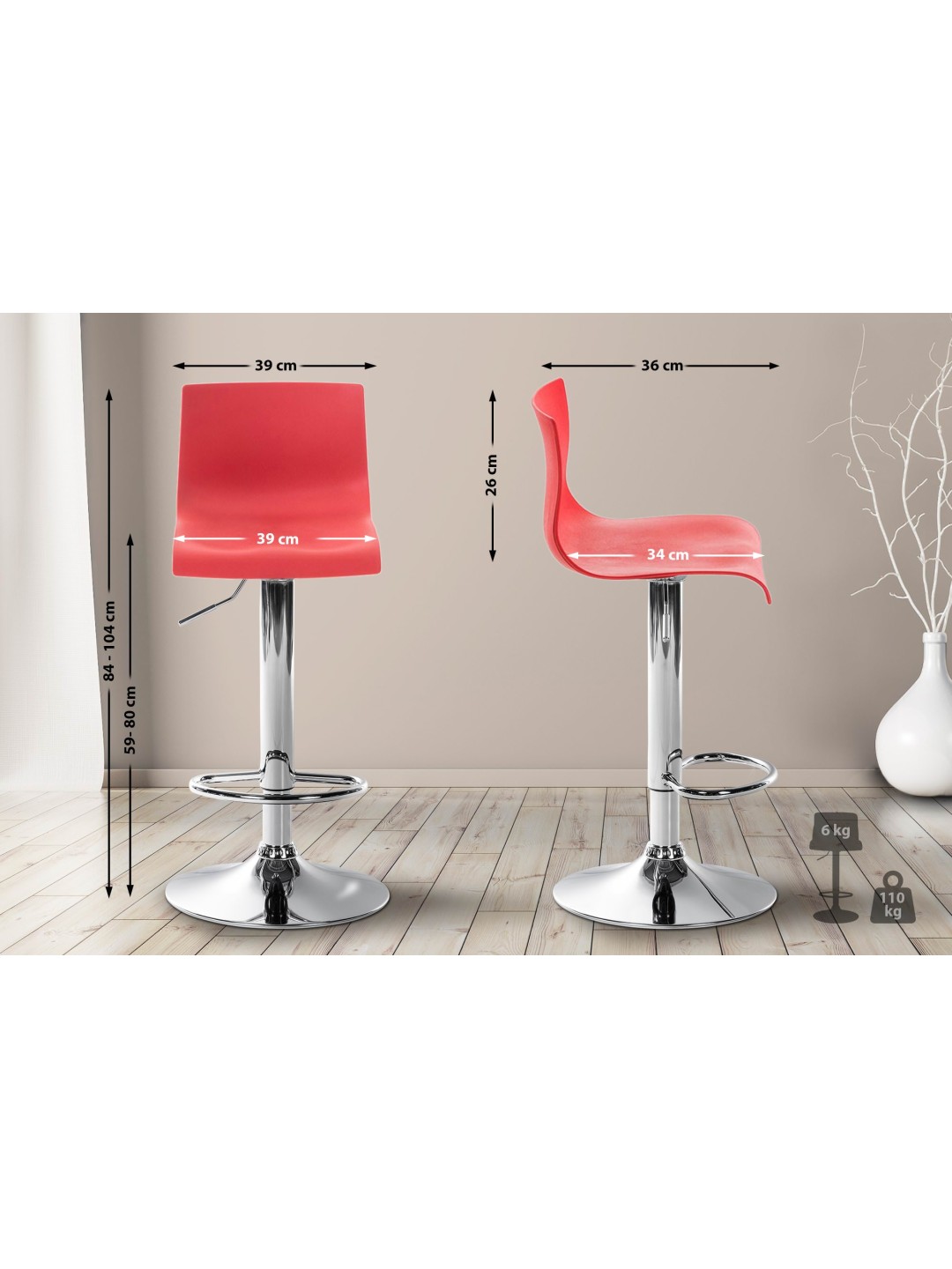 El taburete de bar Hover impresiona por su diseño moderno. Se adapta a casi todos los estilos y le da a cada bar una sensación sofisticada. Gracias a su altura regulable, el taburete de bar se puede utilizar de forma universal y se adapta a todas las alturas de mostrador. El asiento ergonómico se adapta al cuerpo. El respaldo, el asiento giratorio y el reposapiés te permitirán sentarte cómodamente durante horas. El asiento de plástico (polipropileno) y la estructura de metal son muy fáciles de limpiar.