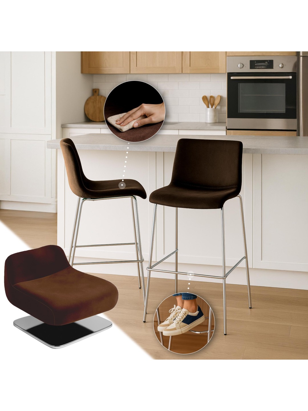 Taburete de bar Hoover terciopelo 4 pies cromo, marrón