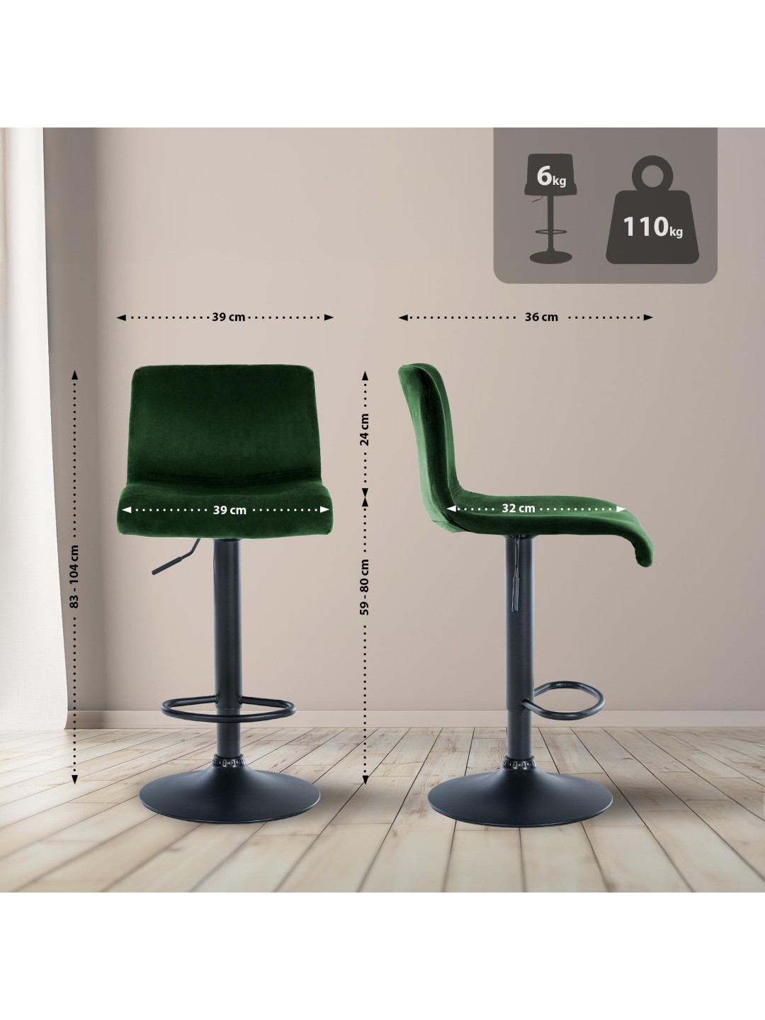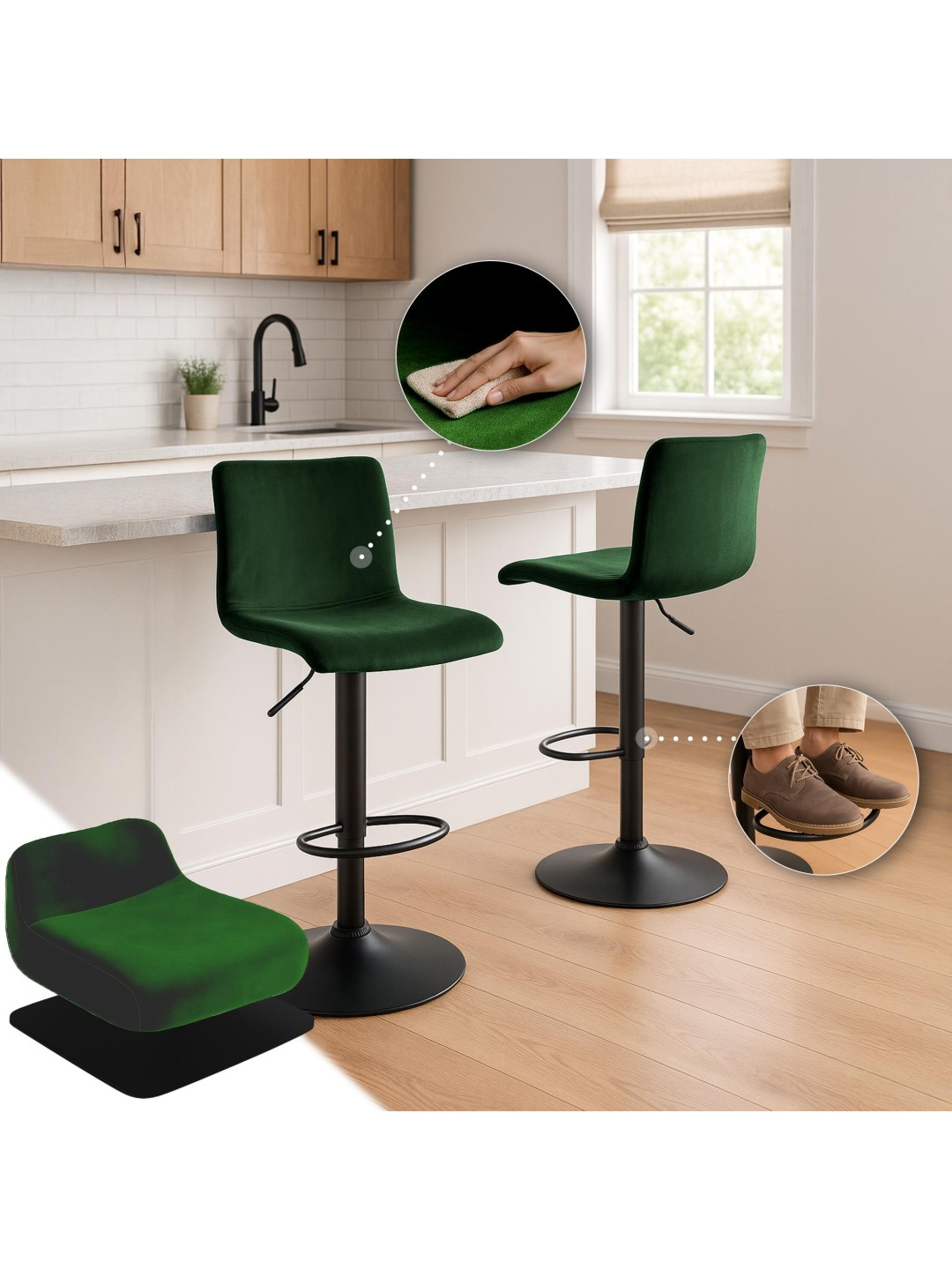 Taburete de bar Hoover terciopelo B, verde