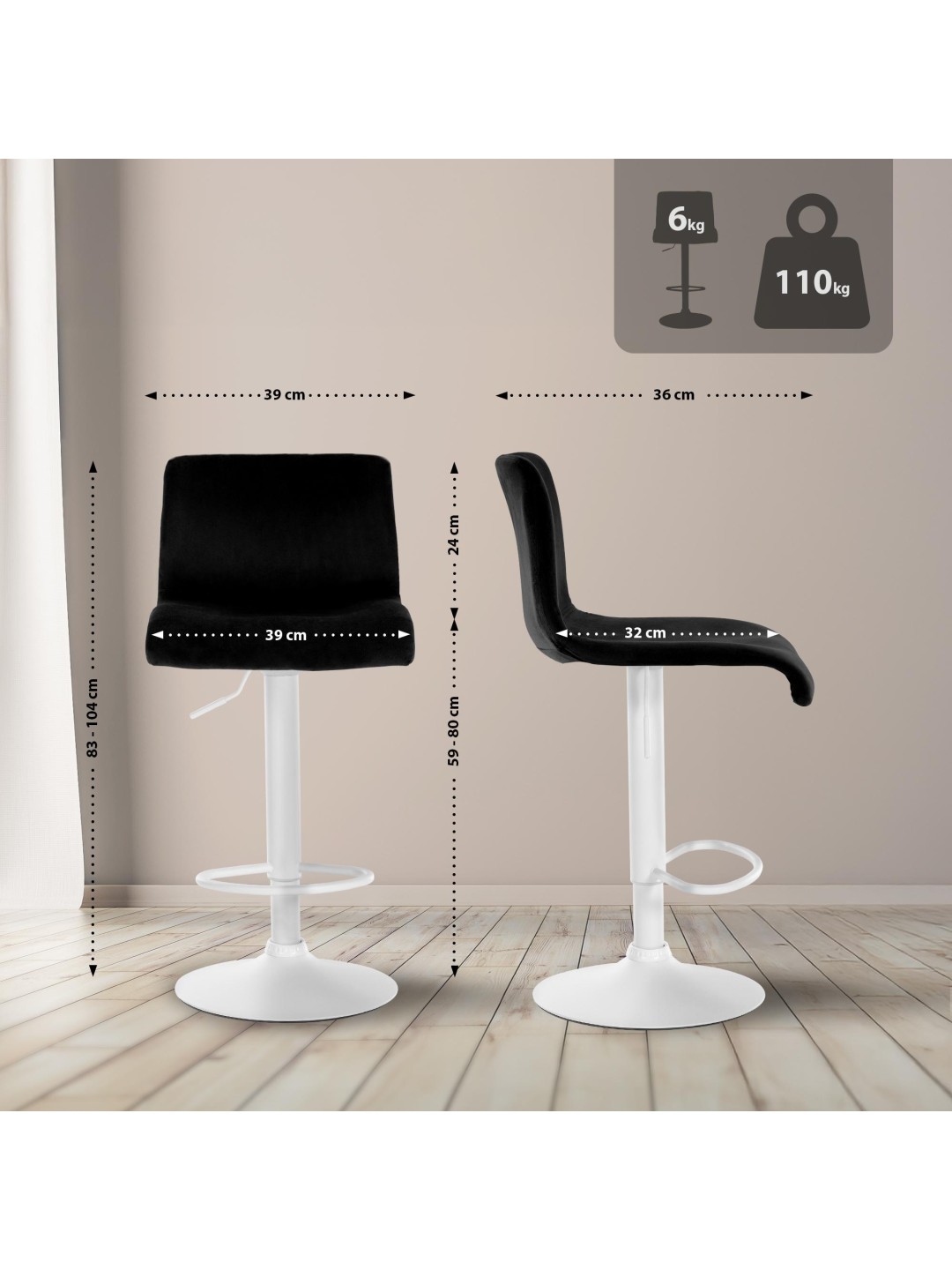 La carcasa del asiento y el respaldo suavemente acolchados garantizan un asiento cómodo y alivian la tensión en la zona lumbar. Un reposapiés integrado proporciona comodidad adicional al proporcionar un lugar relajante para que descansen los pies. Además de la altura del asiento ajustable, el taburete de bar se puede girar 360°.