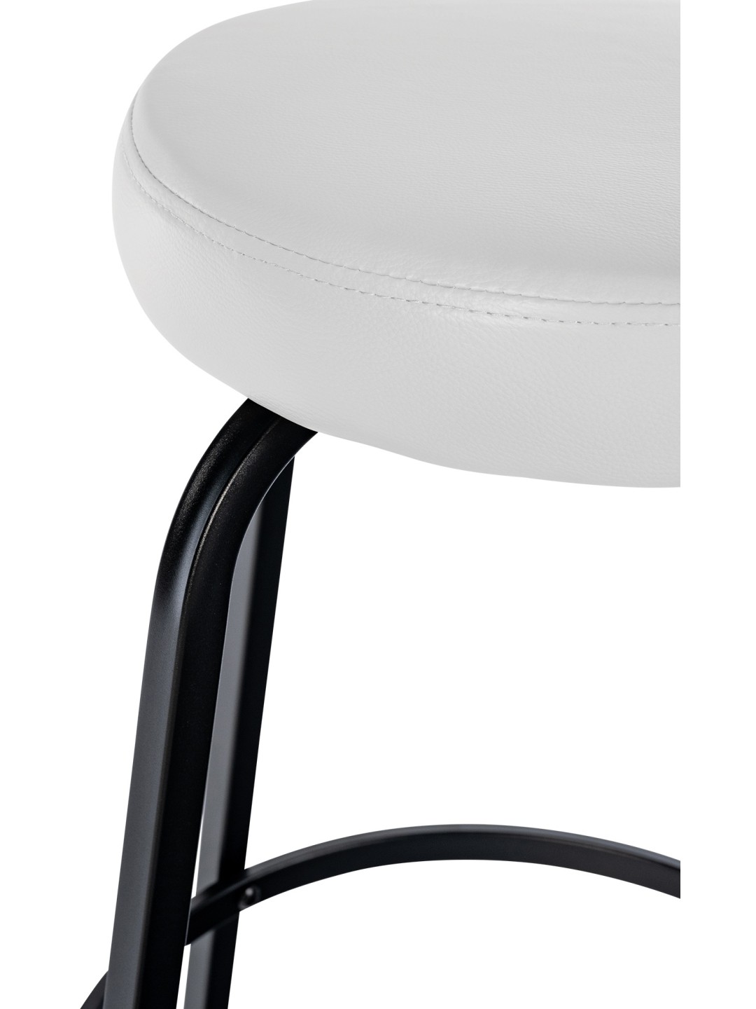 El taburete se apoya en una estructura de cuatro patas de metal negro mate. Este marco es estable y extremadamente cuidadoso con el suelo, por lo que no daña los suelos sensibles. Los travesaños del marco se pueden utilizar como cómodo reposapiés.