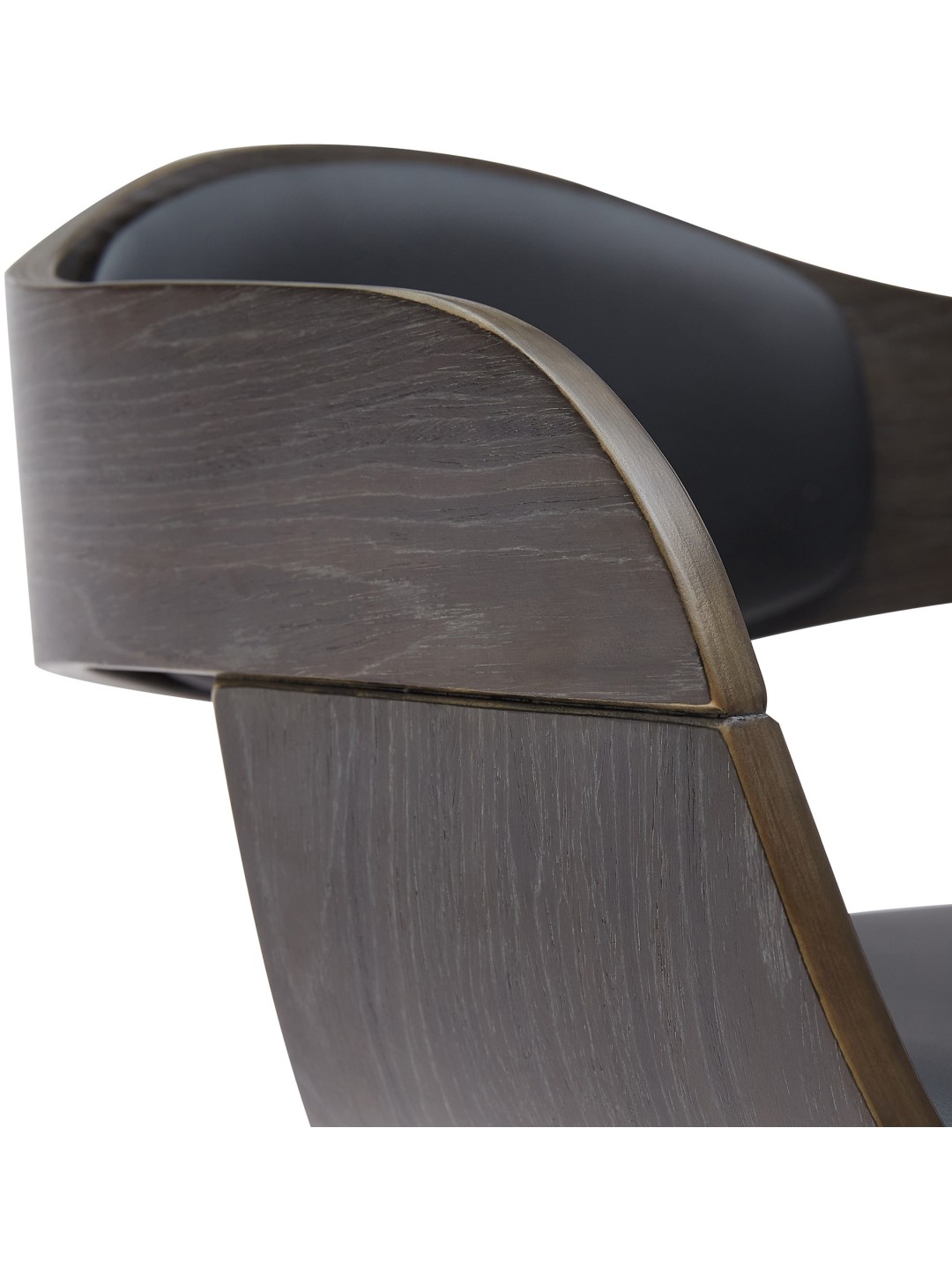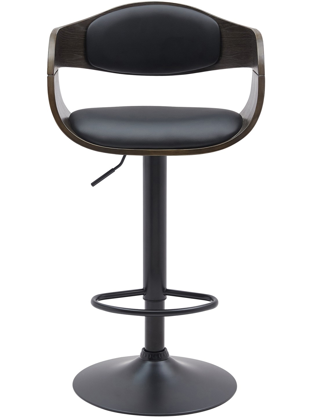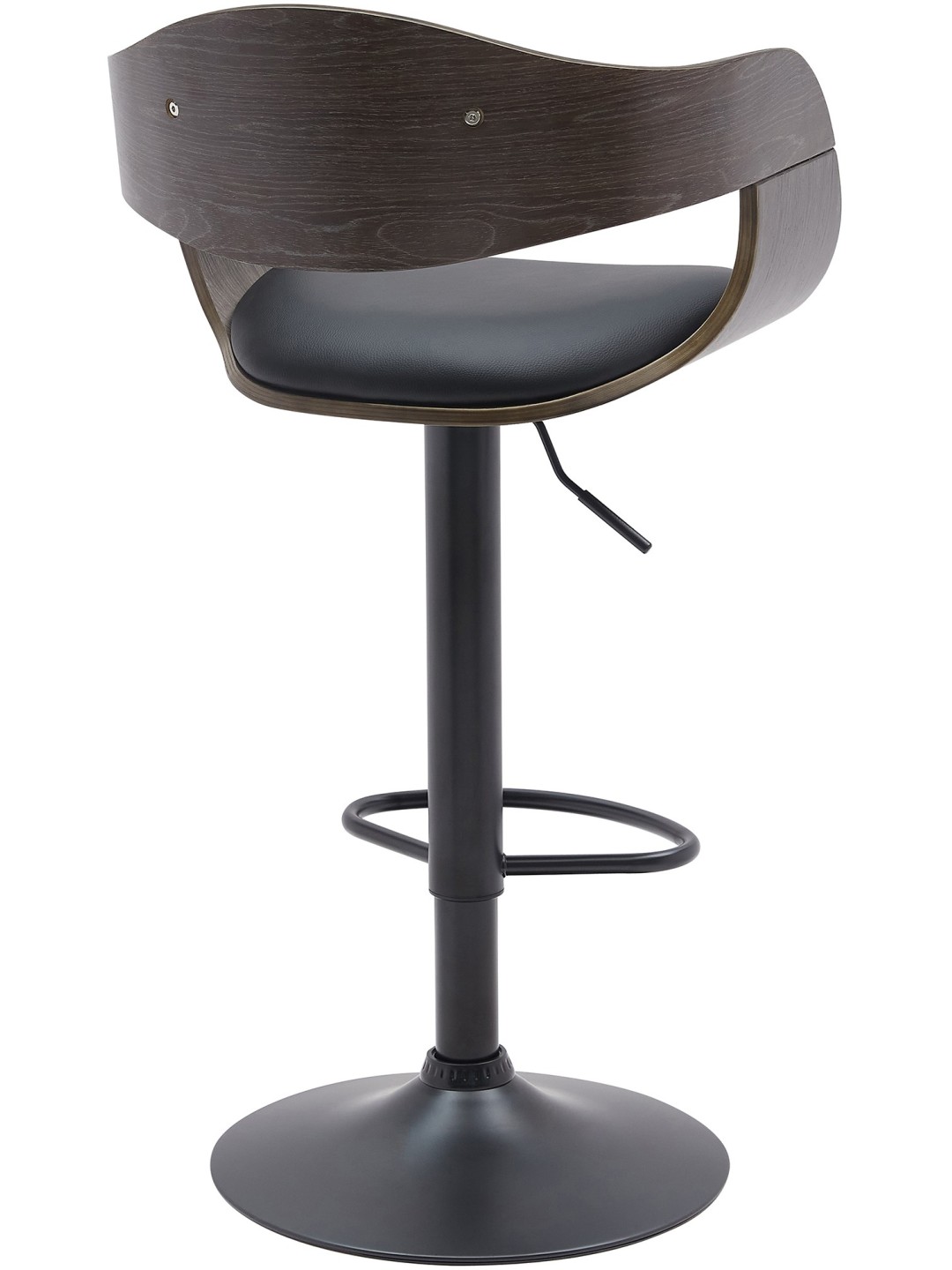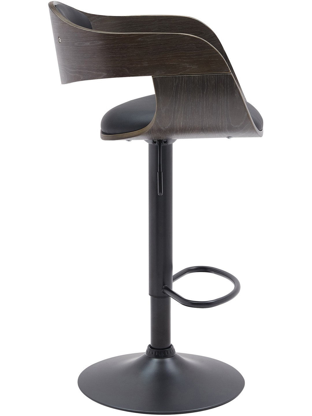 La silla de bar se apoya en una robusta estructura de metal en negro mate. Mediante un elevador de gas, el taburete de bar se puede regular en altura de forma continua y, por lo tanto, se puede adaptar individualmente a cualquier tamaño y altura de mostrador. El reposapiés integrado contribuye a una posición sentada recta y erguida.
