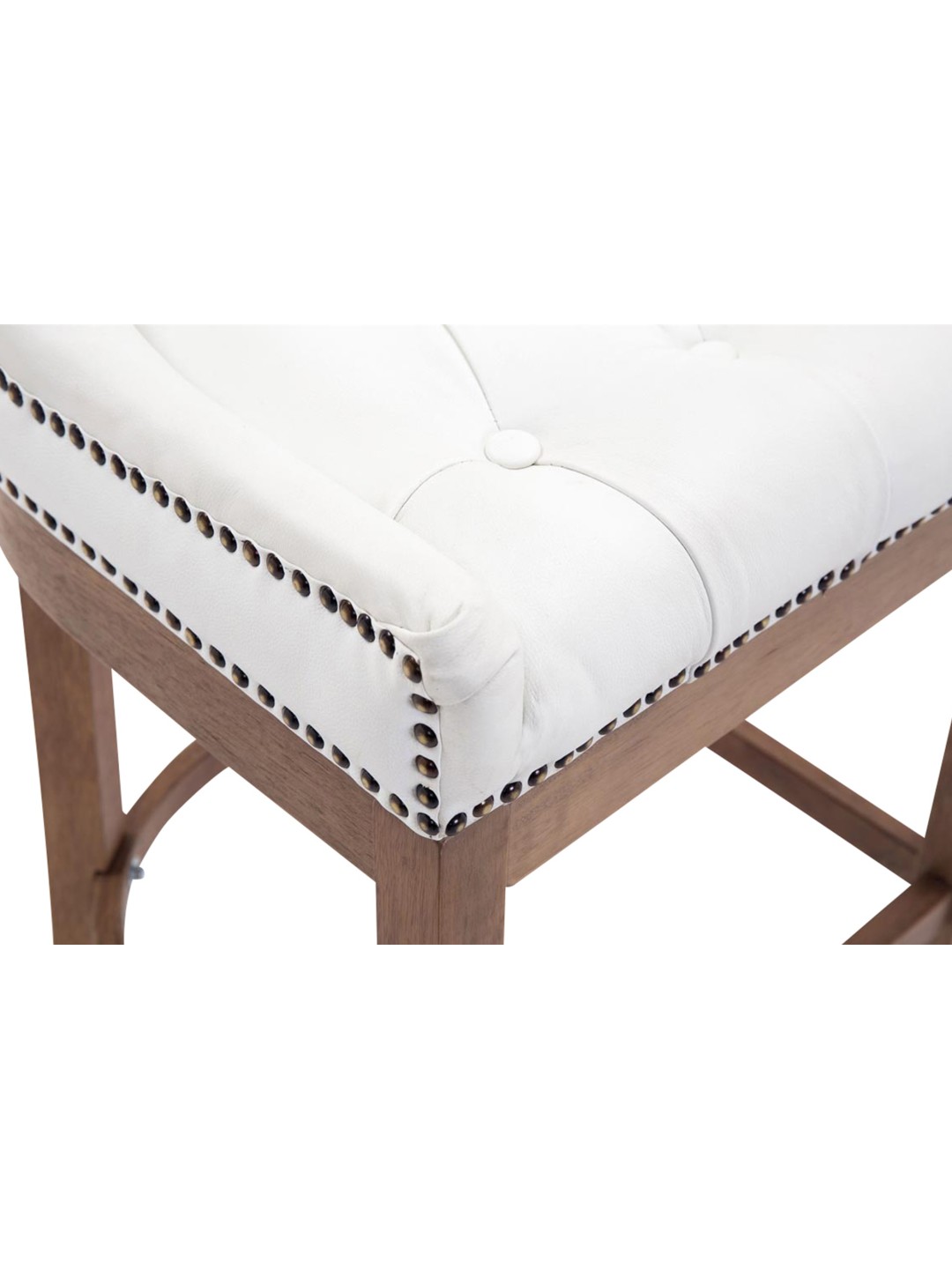 Taburete de bar Lakewood cuero auténtico, luz antigua, blanco