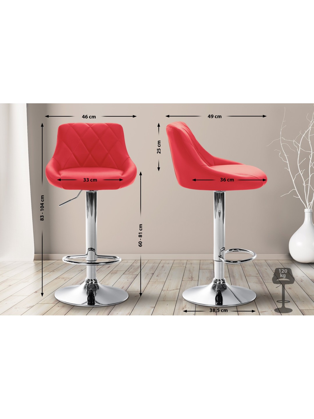 Taburete de bar Lazio piel sintética cromado, rojo