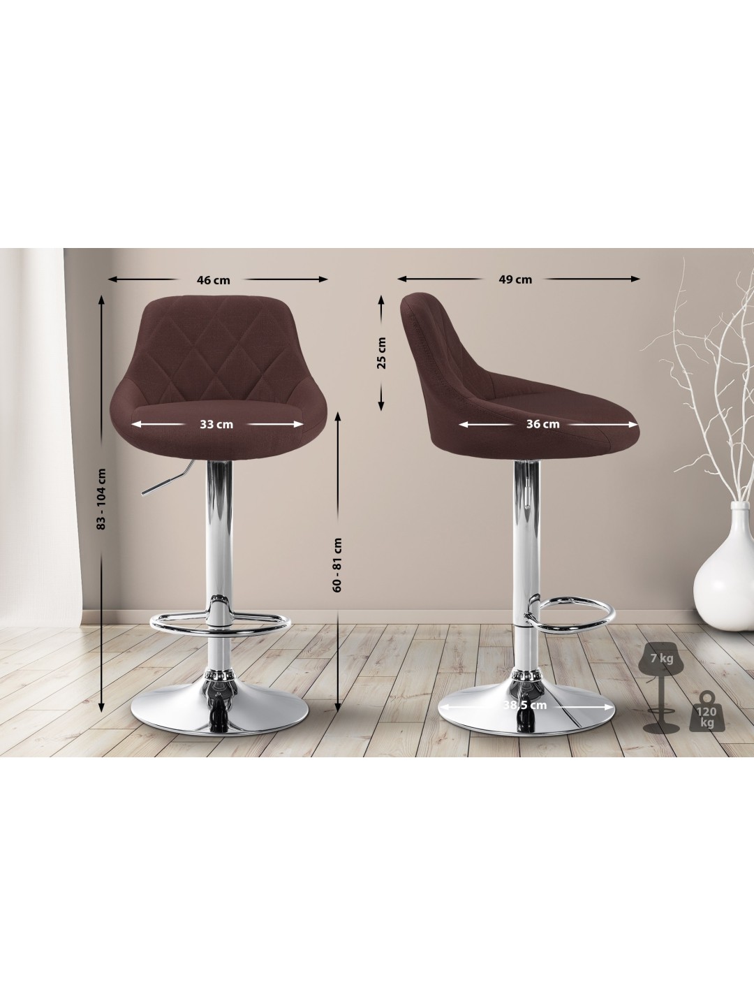 Taburete de bar Lazio tela cromo, marrón