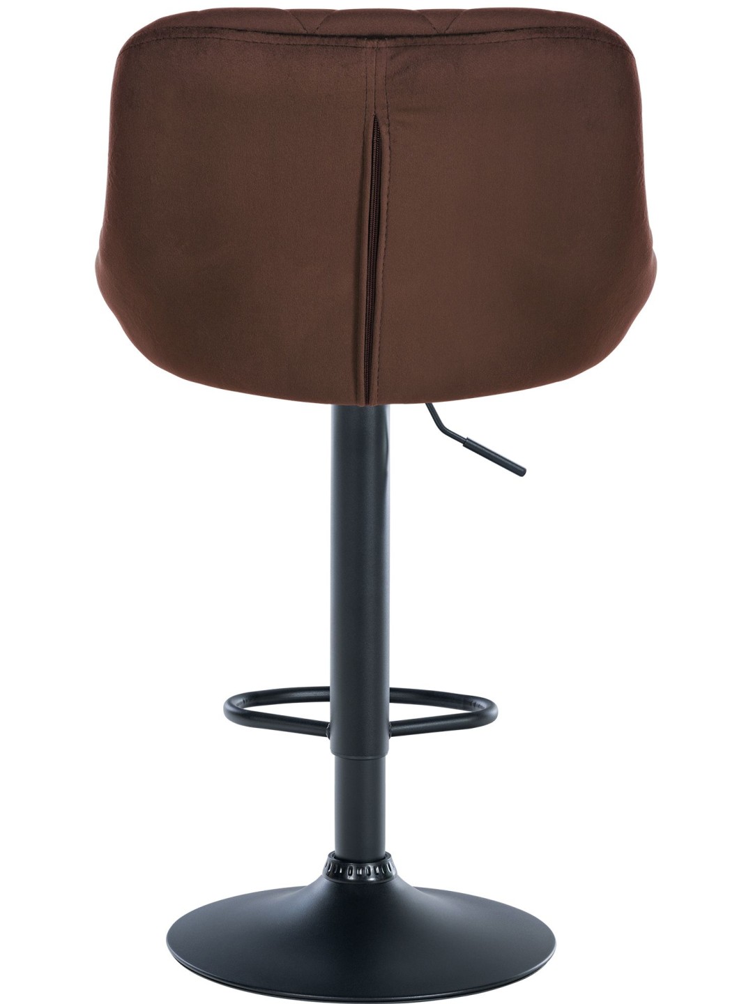 Este taburete impresiona por su diseño elegante. El asiento está tapizado con tela de terciopelo y tiene laboriosas costuras decorativas. Utilizando el elevador de gas, este modelo se puede ajustar infinitamente a la altura deseada, lo que lo hace ideal para cualquier altura de mostrador. El reposapiés, que garantiza un excelente confort al sentarse, se puede ajustar en sincronía con la altura del asiento. El asiento se puede girar 360° con el reposapiés. La estructura está hecha de metal, hay protectores de piso debajo de la base de trompeta que evitan que el piso se raye.