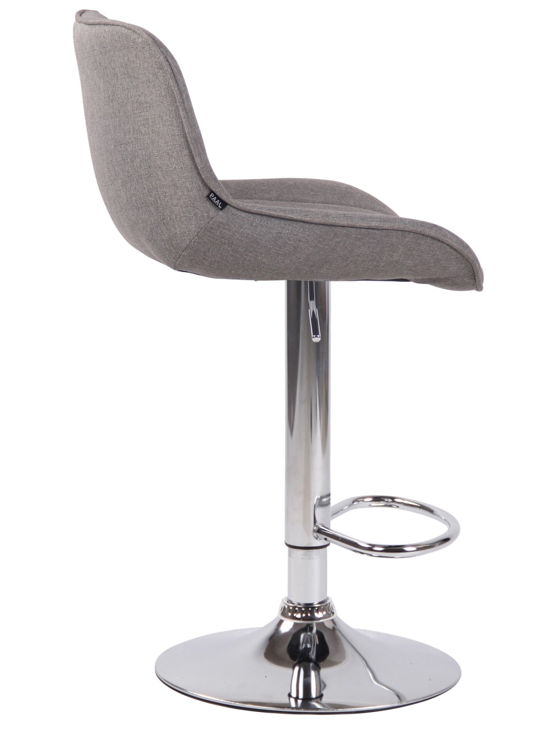 Este taburete de bar confiere a cualquier estancia un aspecto exclusivo y convence no sólo por sus excelentes propiedades de asiento, sino también por su moderno diseño. El asiento está tapizado con una funda de tela de fácil cuidado. Utilizando el elevador de gas, este modelo se puede ajustar infinitamente a la altura deseada, lo que lo hace ideal para cualquier altura de mostrador. El reposapiés, que garantiza un muy buen confort al sentarse, se puede ajustar en sincronía con la altura del asiento. El asiento se puede girar 360° con el reposapiés. La estructura está hecha de metal con aspecto cromado, blanco o negro. También hay protectores de piso debajo de la base de la trompeta para evitar que las superficies se rayen.