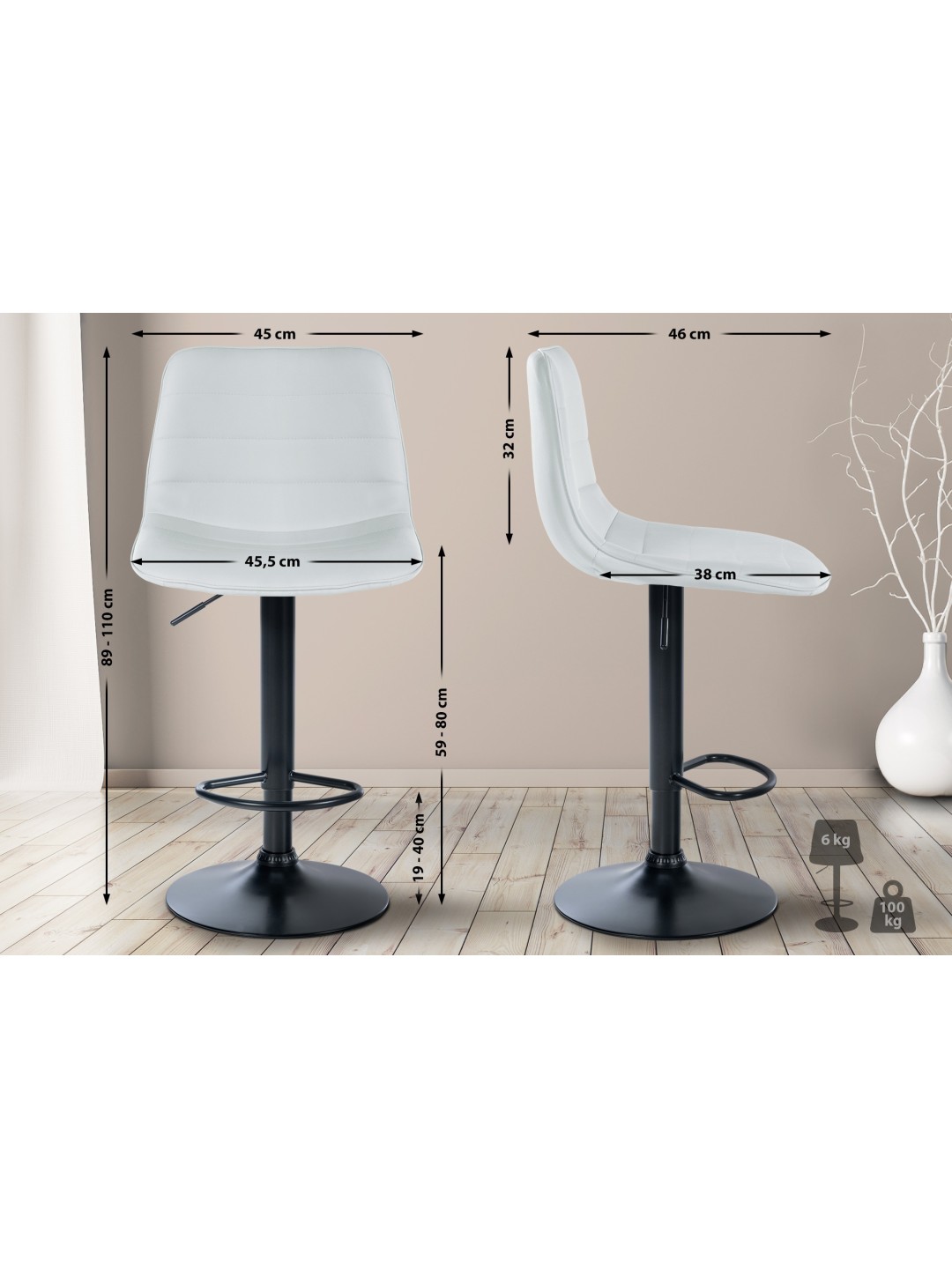 Nuestro taburete se puede ajustar infinitamente en altura mediante un elevador de gas y el asiento, incluido el reposapiés, se puede girar 360°, lo que lo hace ideal para cualquier mostrador. Gracias a las combinaciones de colores de libre elección