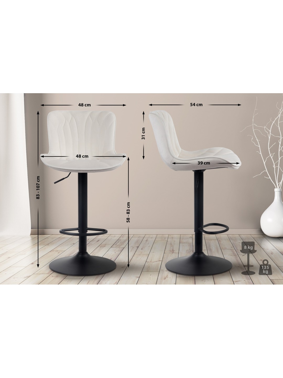 Taburete de bar Linus terciopelo, crema