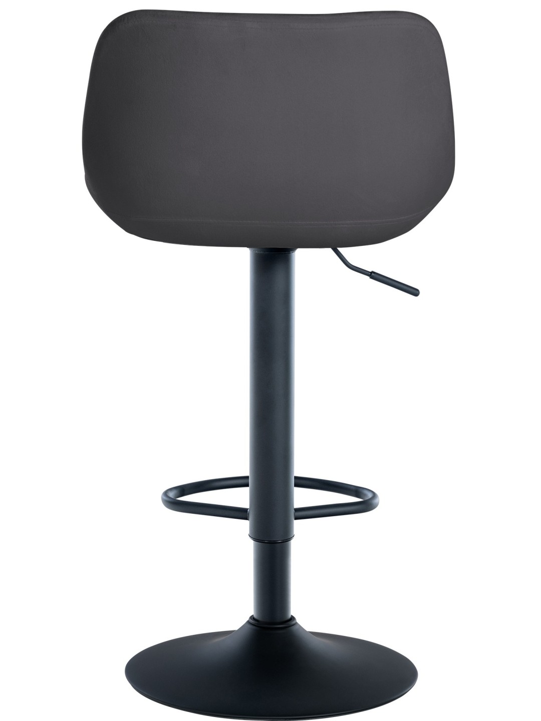 El pie de trompeta de la silla de mostrador se puede girar 360° y tiene un reposapiés, lo que garantiza una comodidad para sentarse durante más tiempo. tiempo. La estructura de metal en negro es regulable en altura y ofrece un soporte seguro. La estructura también está equipada con protectores de suelo para evitar rayar el suelo.