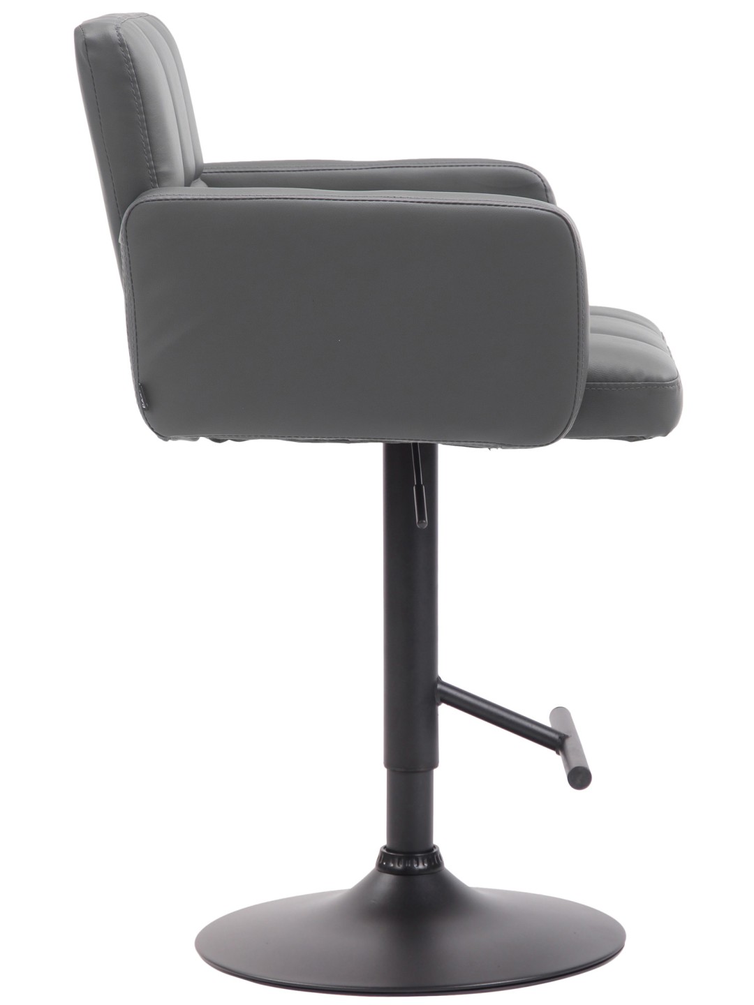El taburete de bar de diseño Los Angeles es un taburete de bar cómodo y sólido para el uso diario. Los reposabrazos y el respaldo altos le permitirán sentarse cómodamente incluso durante largos períodos de tiempo. Además, el asiento tapizado en polipiel está cómodamente acolchado. En el centro de la estructura se encuentra un reposapiés que es muy importante para una postura correcta al sentarse. La altura del asiento se puede ajustar individualmente mediante una palanca situada en la parte inferior derecha del asiento. El asiento gira 360 grados para facilitar la entrada y salida.
