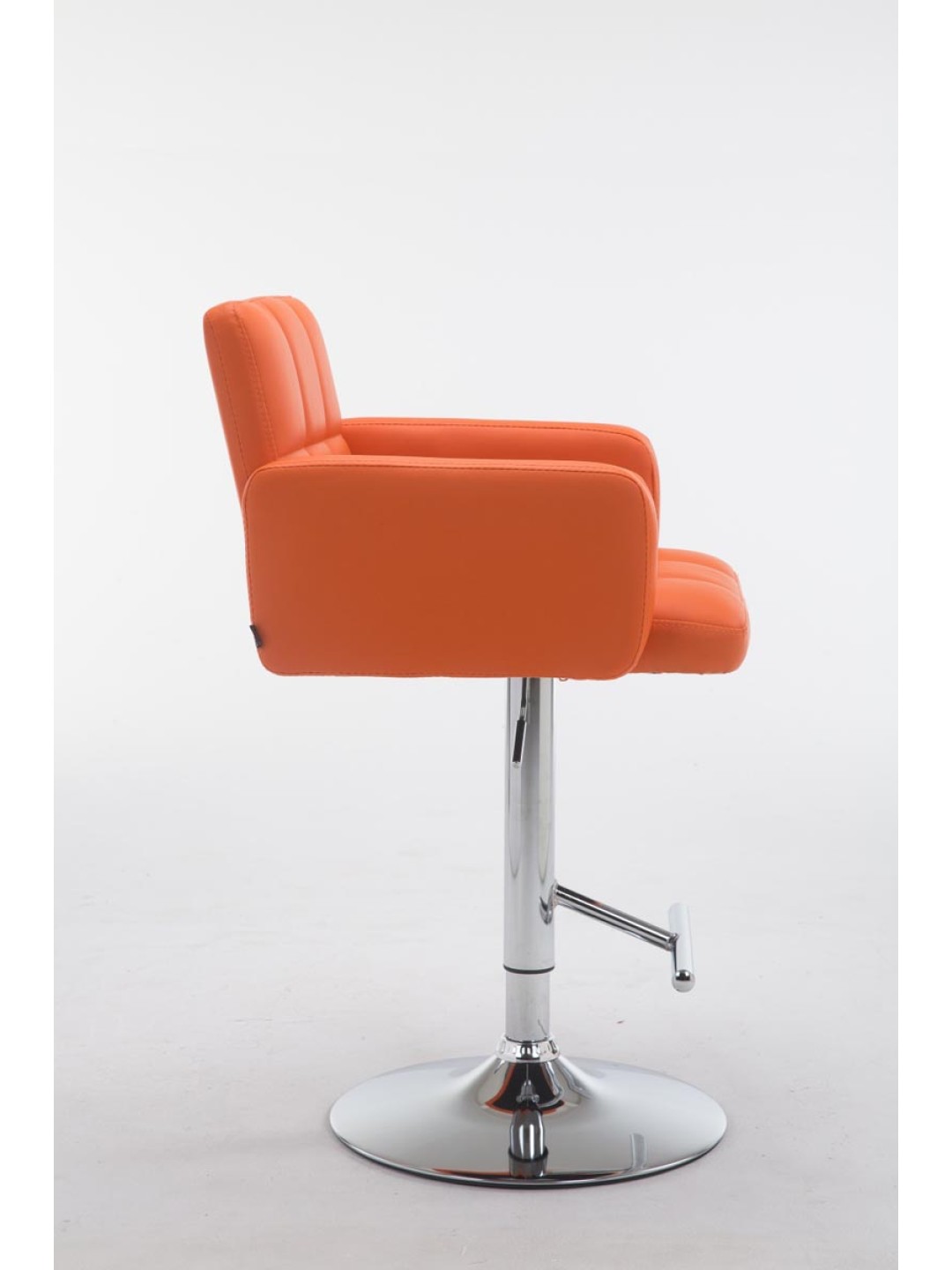 El taburete de bar de diseño Los Angeles es un taburete de bar cómodo y sólido para el uso diario. Los reposabrazos y el respaldo altos le permitirán sentarse cómodamente incluso durante largos períodos de tiempo. Además, el asiento tapizado en polipiel está cómodamente acolchado. En el centro de la estructura se encuentra un reposapiés que es muy importante para una postura correcta al sentarse. La altura del asiento se puede ajustar individualmente mediante una palanca situada en la parte inferior derecha del asiento. El asiento gira 360 grados para facilitar la entrada y salida.