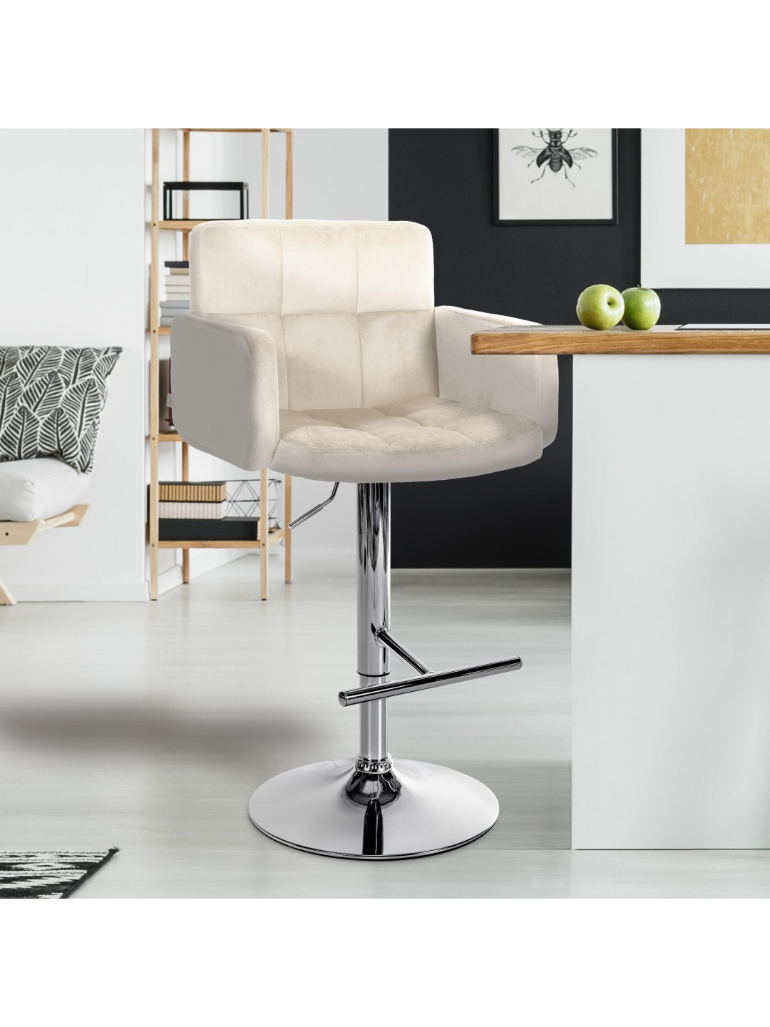 Taburete de bar Los Angeles Terciopelo cromado, crema