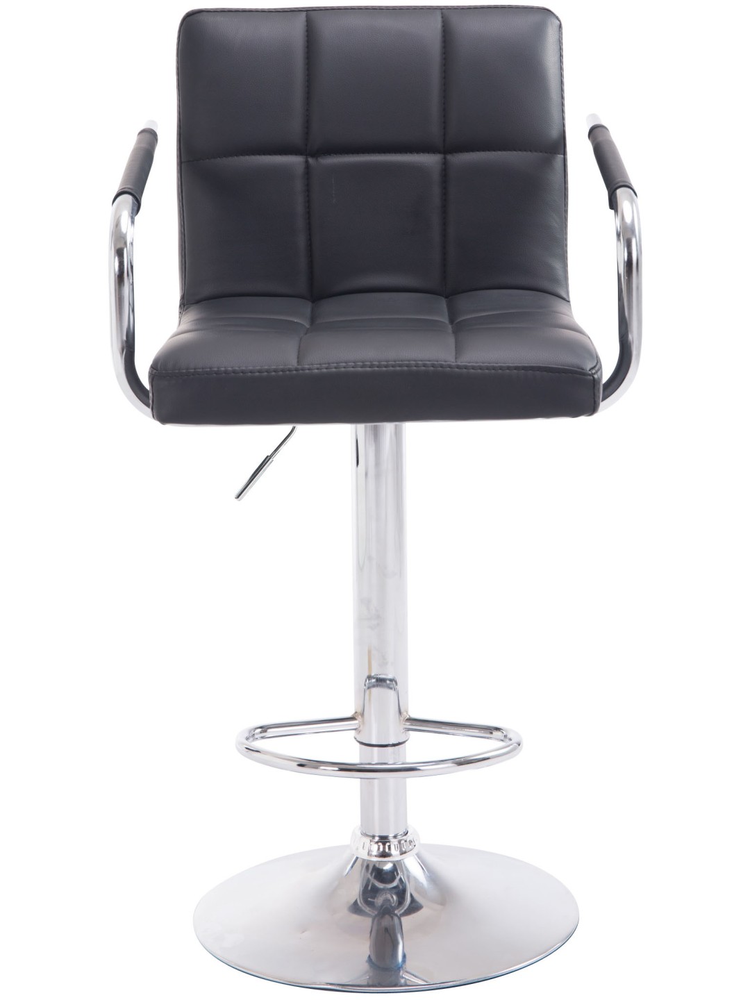 Este taburete de bar llama la atención: es moderno pero atemporal. Cuenta con respaldo, reposabrazos y reposapiés para que puedas sentarte cómodamente durante toda la noche. El asiento se puede girar 360° y su forma ergonómica se adapta perfectamente al respaldo. La superficie de piel sintética es muy fácil de limpiar si algo sale mal. Gracias a la altura regulable del elevador de gas, este taburete de bar se puede utilizar de forma universal y se adapta a todas las alturas de mostrador. Composición del material: 100% poliuretano