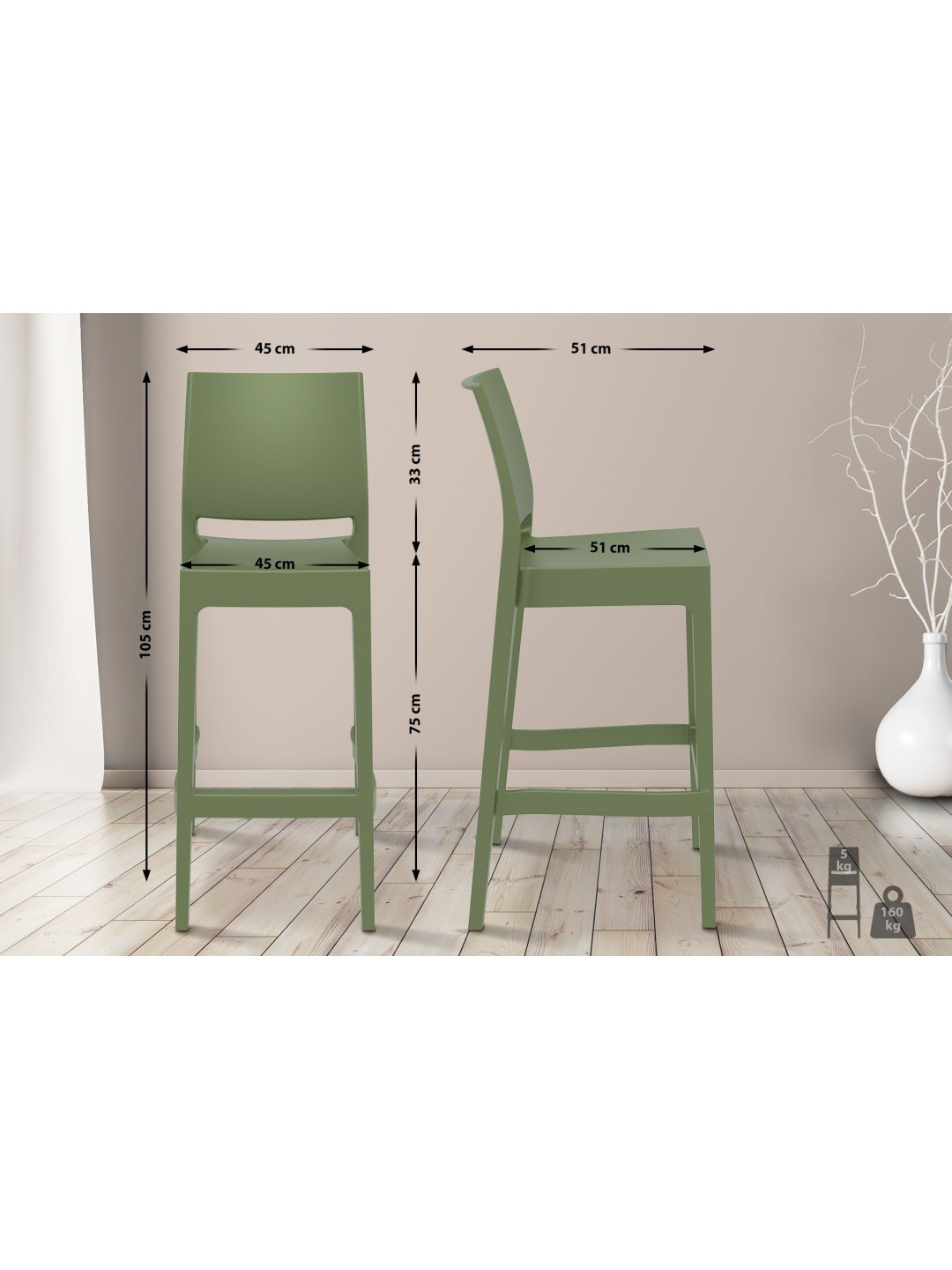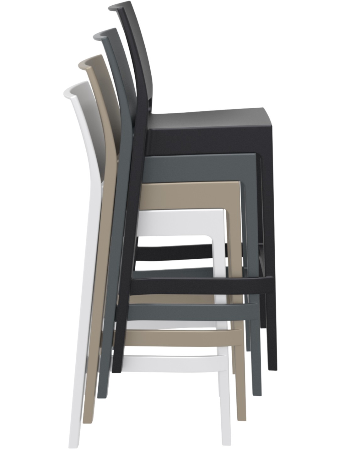 El taburete de bar Maya impresiona por su diseño sencillo y su funcionalidad. La altura del asiento de 75 cm en combinación con el respaldo crea una sensación de comodidad al sentarse. Esta comodidad se completa con el reposapiés. Gracias a su composición material de polipropileno reforzado con fibra de vidrio, este taburete es apto para uso interior y exterior. Además, el taburete para mostrador es absolutamente resistente a la intemperie y a las manchas, la suciedad y la humedad. El taburete de bar también es resistente a los rayos UV; Incluso la luz solar intensa y frecuente no hace que el plástico se ponga amarillo o se decolore; la profundidad del color se conserva durante mucho tiempo. Si necesitas guardar a Maya, este taburete también es apilable. ¡Un verdadero atractivo con un diseño sencillo!