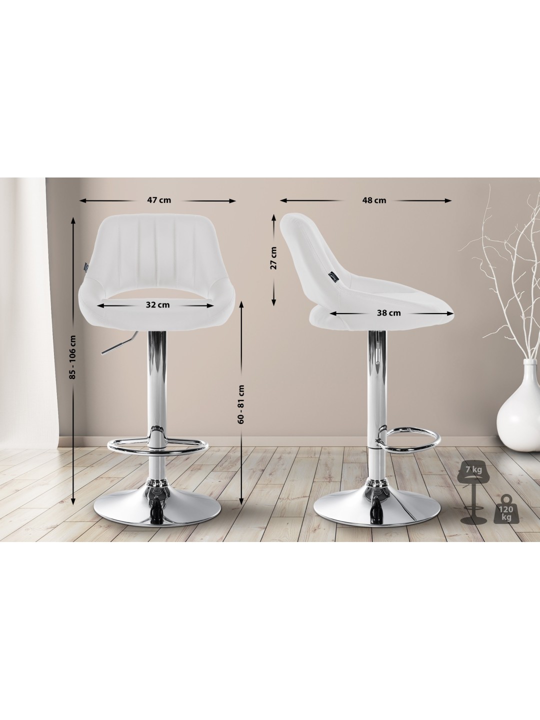 Taburete de bar Milet símil pielEl taburete de bar Milet ofrece un asiento cómodo en el mostrador: asiento acolchado con respaldo de símil piel de fácil cuidado, giratorio 360° y regulable en altura mediante elevador de gas. El reposapiés circundante favorece una postura relajada, la base de placa de metal con anillo antideslizante se mantiene silenciosa y protege el suelo. Puede soportar hasta 120 kg.