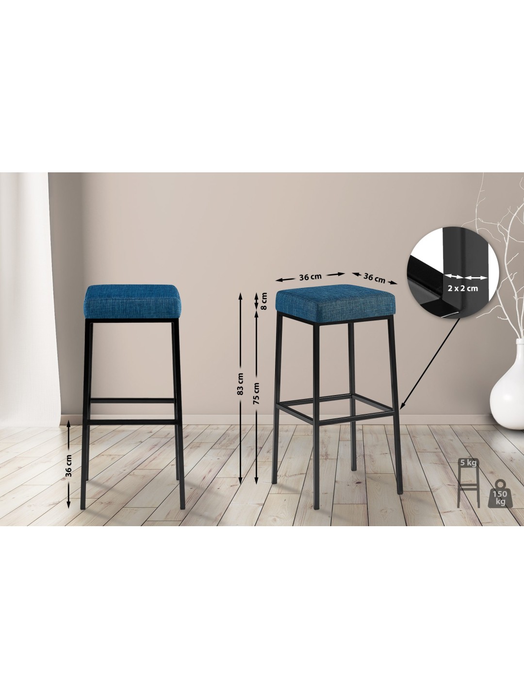 El taburete se apoya en una robusta estructura de metal de cuatro patas. Este marco es extremadamente estable y respetuoso con el suelo, por lo que no daña los suelos sensibles. Los travesaños de la estructura se pueden utilizar como cómodo reposapiés y proporcionan estabilidad adicional, de modo que la silla de bar puede soportar hasta 150 kilogramos.