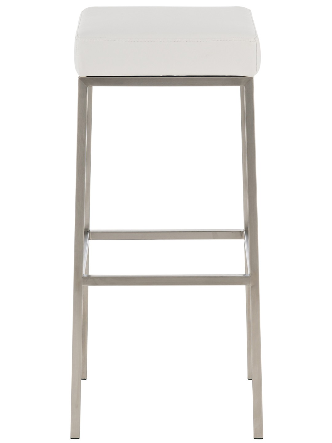 El asiento cuadrado de la silla de mostrador es cómodo incluso sin reposabrazos ni respaldo. De ello se encarga el tapizado, que tiene una funda de cuero artificial resistente y fácil de cuidar.