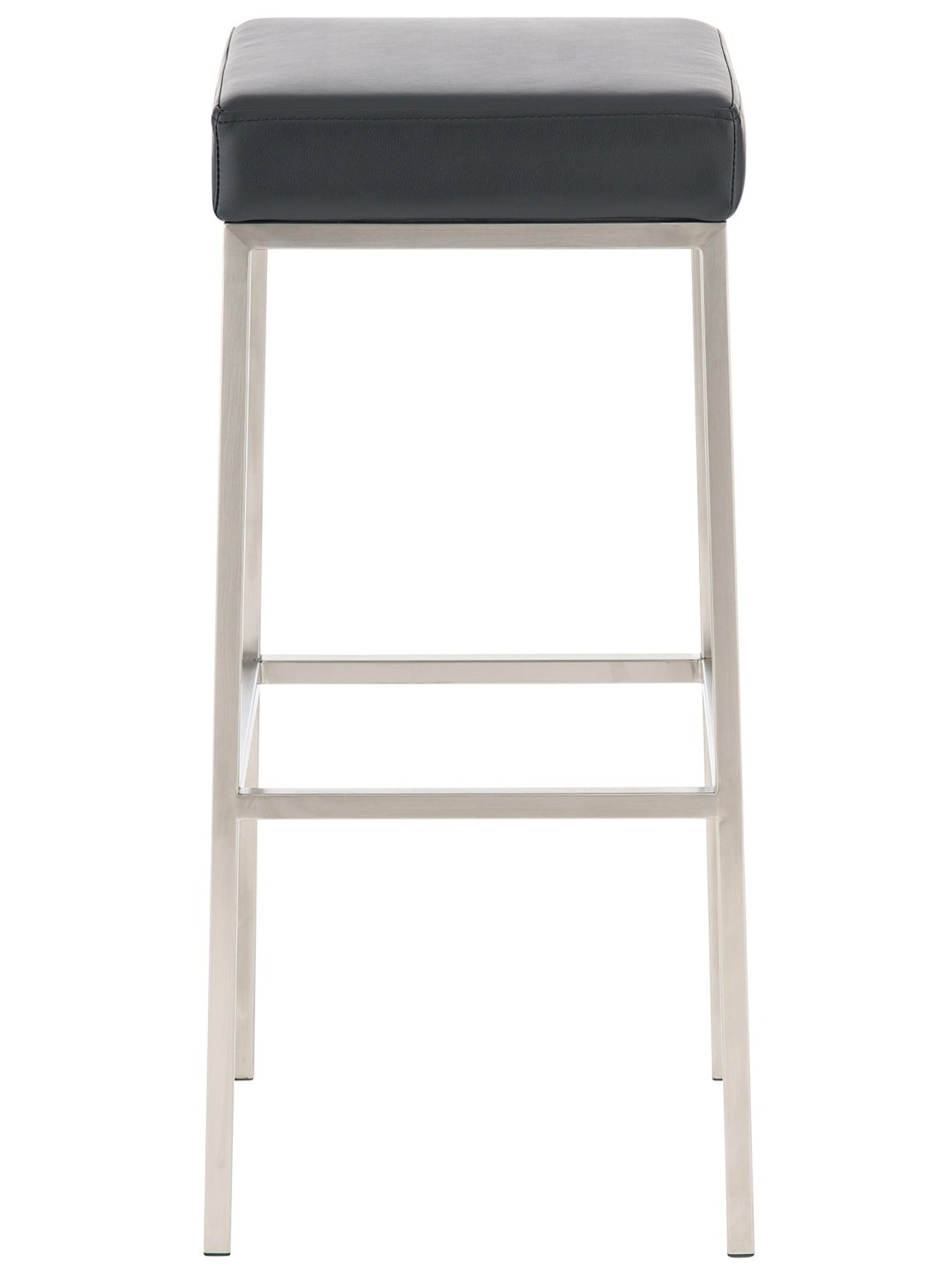 El asiento cuadrado de la silla de mostrador es cómodo incluso sin reposabrazos ni respaldo. De ello se encarga el tapizado, que tiene una funda de cuero artificial resistente y fácil de cuidar.