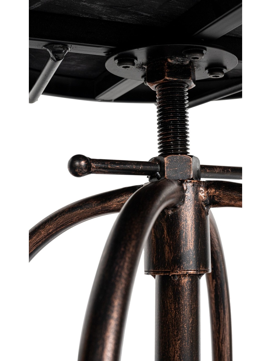 El taburete de bar Pino se caracteriza por una lograda combinación de materiales de madera maciza y acero. Junto con la pátina artificial de color bronce se crea un fantástico aspecto de estilo industrial. Esta silla de bar es ideal para el bar de casa, la cocina, el comedor, etc.