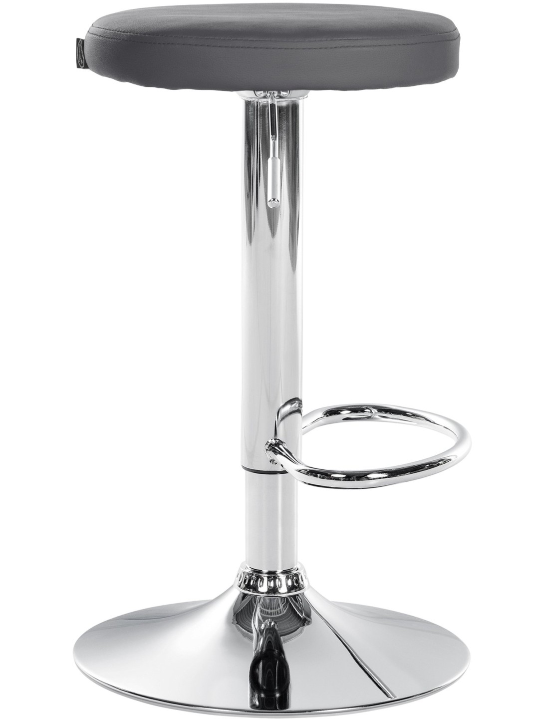 La funda de piel sintética del asiento acolchado redondo está disponible en seis atractivos colores, lo que le permite elegir el estilo perfecto para su hogar. La robusta estructura de metal está disponible en tres atractivos modelos: blanco mate, negro mate o con aspecto cromado. Un reposapiés integrado proporciona comodidad adicional.