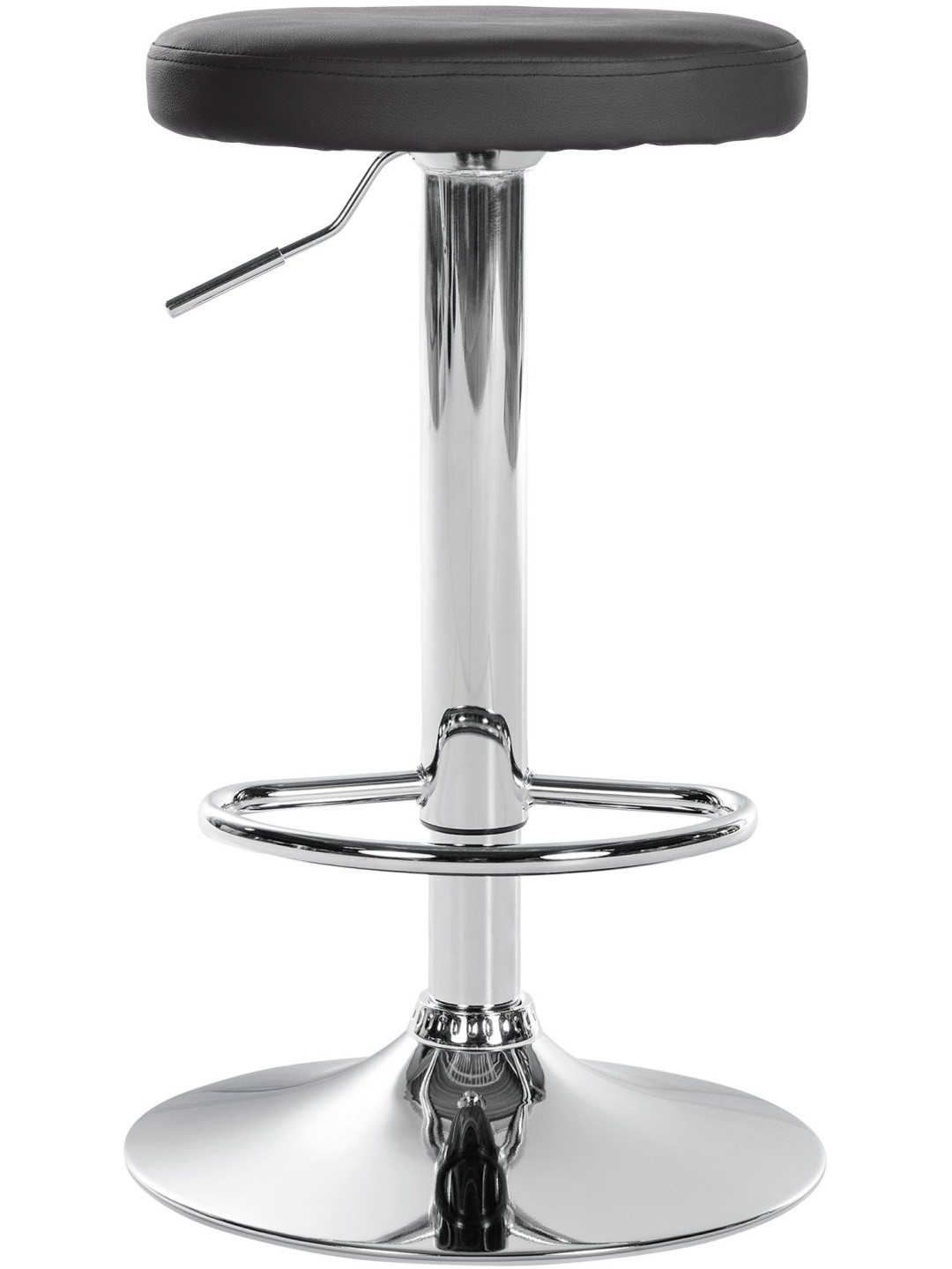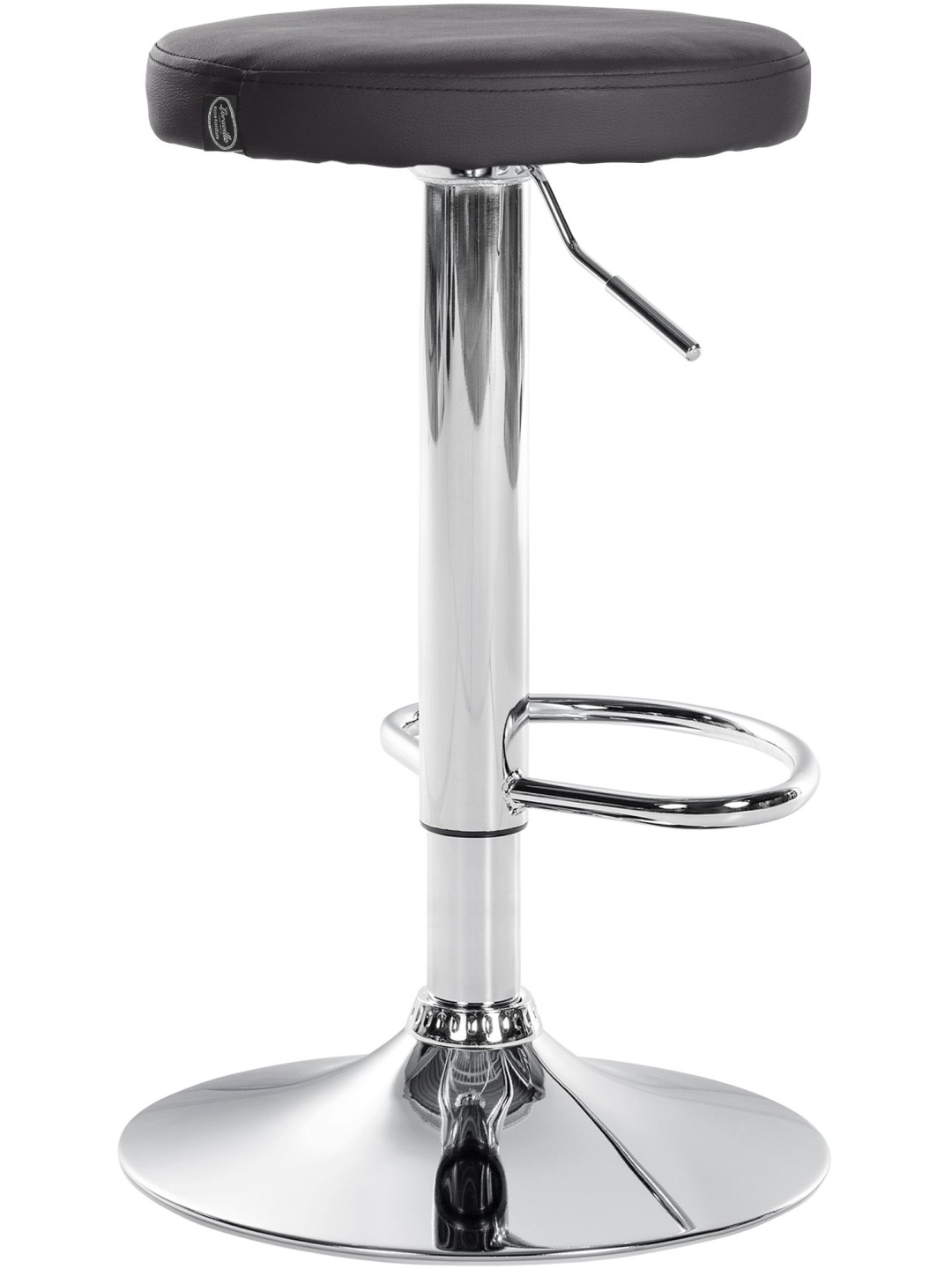 La funda de piel sintética del asiento acolchado redondo está disponible en seis atractivos colores, lo que le permite elegir el estilo perfecto para su hogar. La robusta estructura de metal está disponible en tres atractivos modelos: blanco mate, negro mate o con aspecto cromado. Un reposapiés integrado proporciona comodidad adicional.