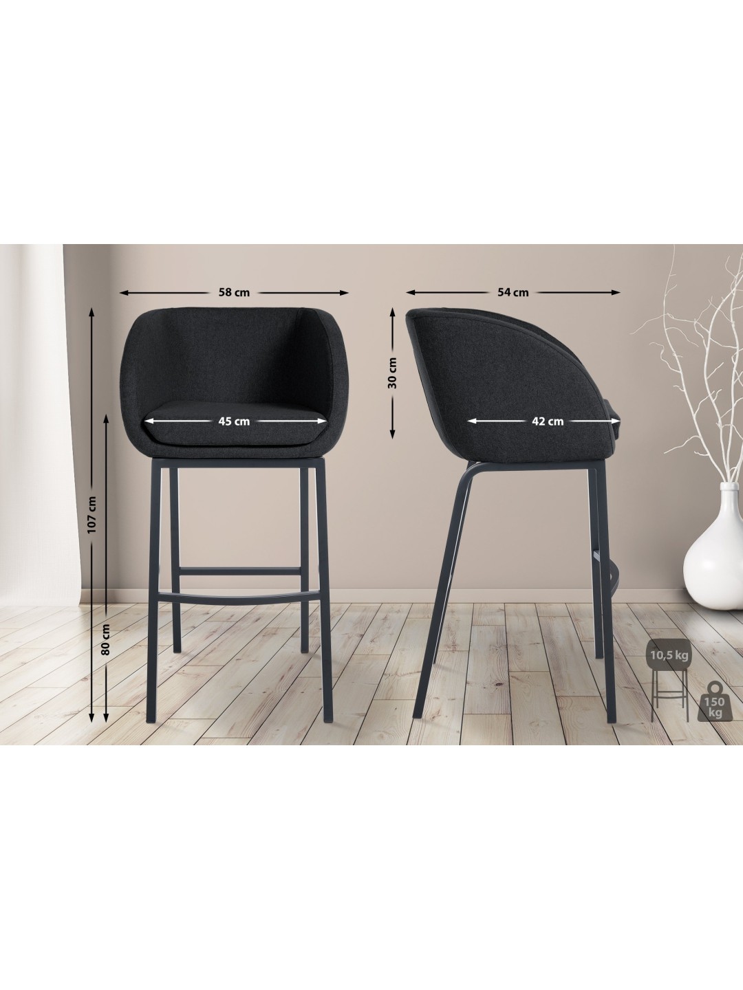 La estructura de cuatro patas de acero inoxidable proporciona al taburete de bar una gran estabilidad y durabilidad. Es resistente al óxido y a la corrosión y puede soportar una carga de hasta 150 kg. El reposapiés integrado proporciona comodidad adicional y hace de nuestro taburete de bar el asiento perfecto para largas veladas.